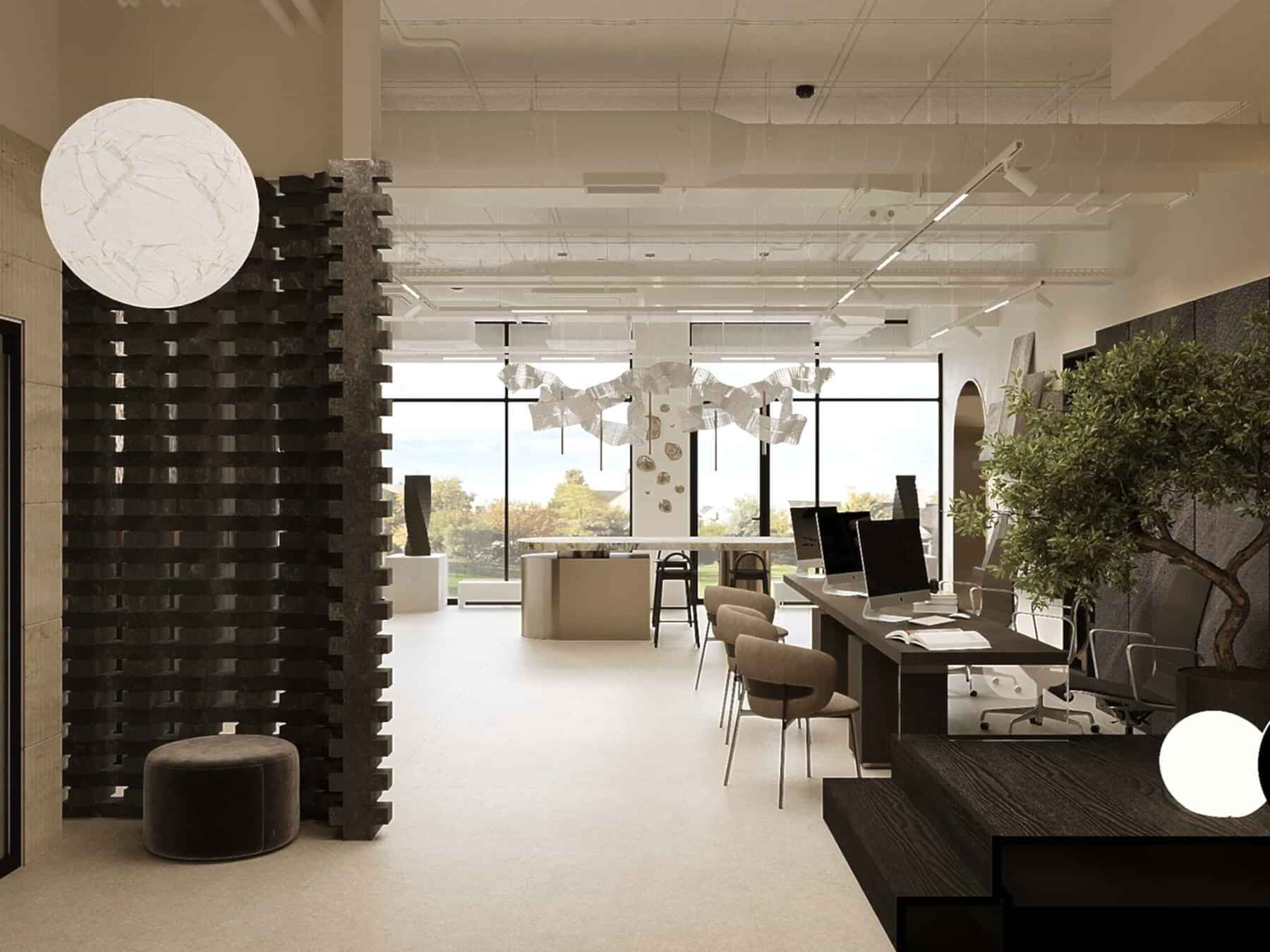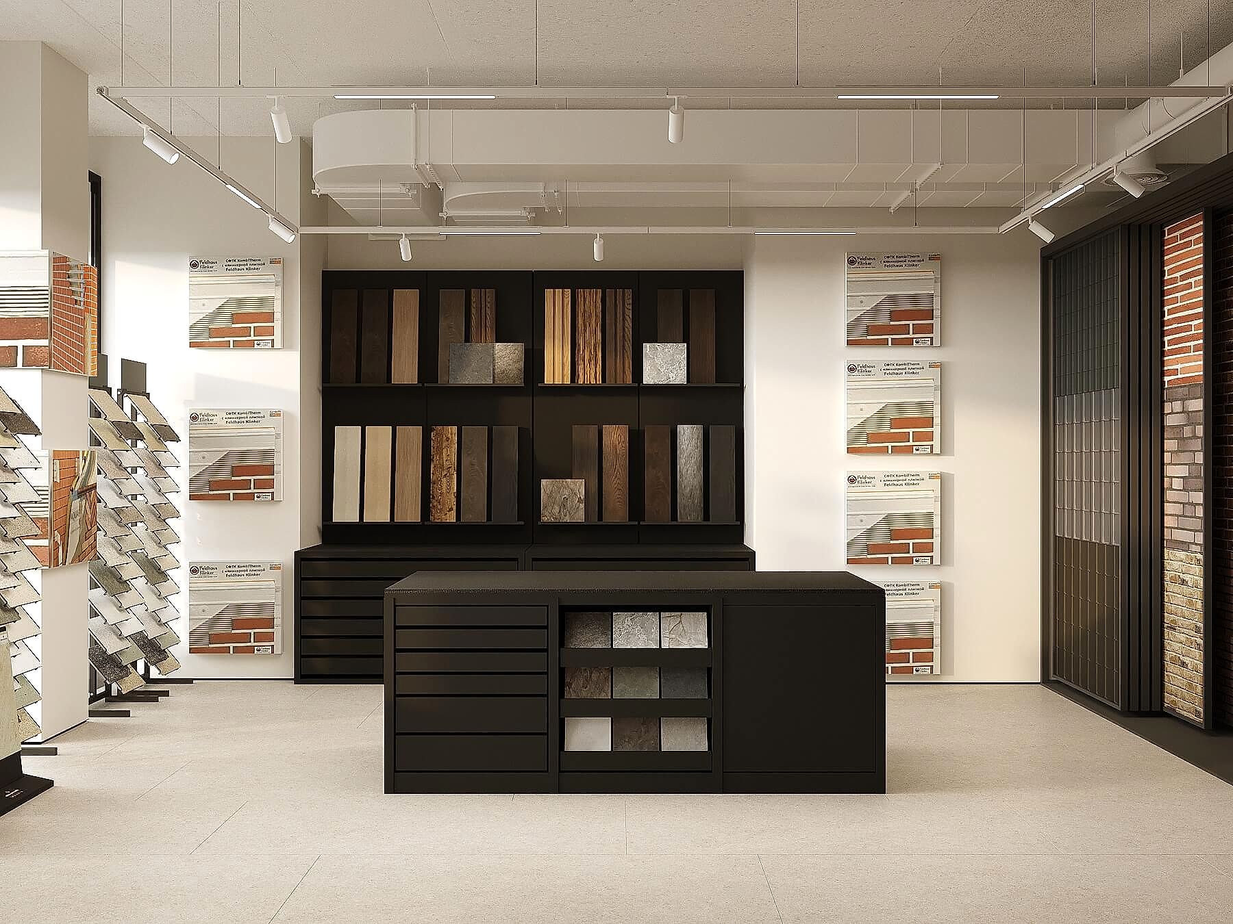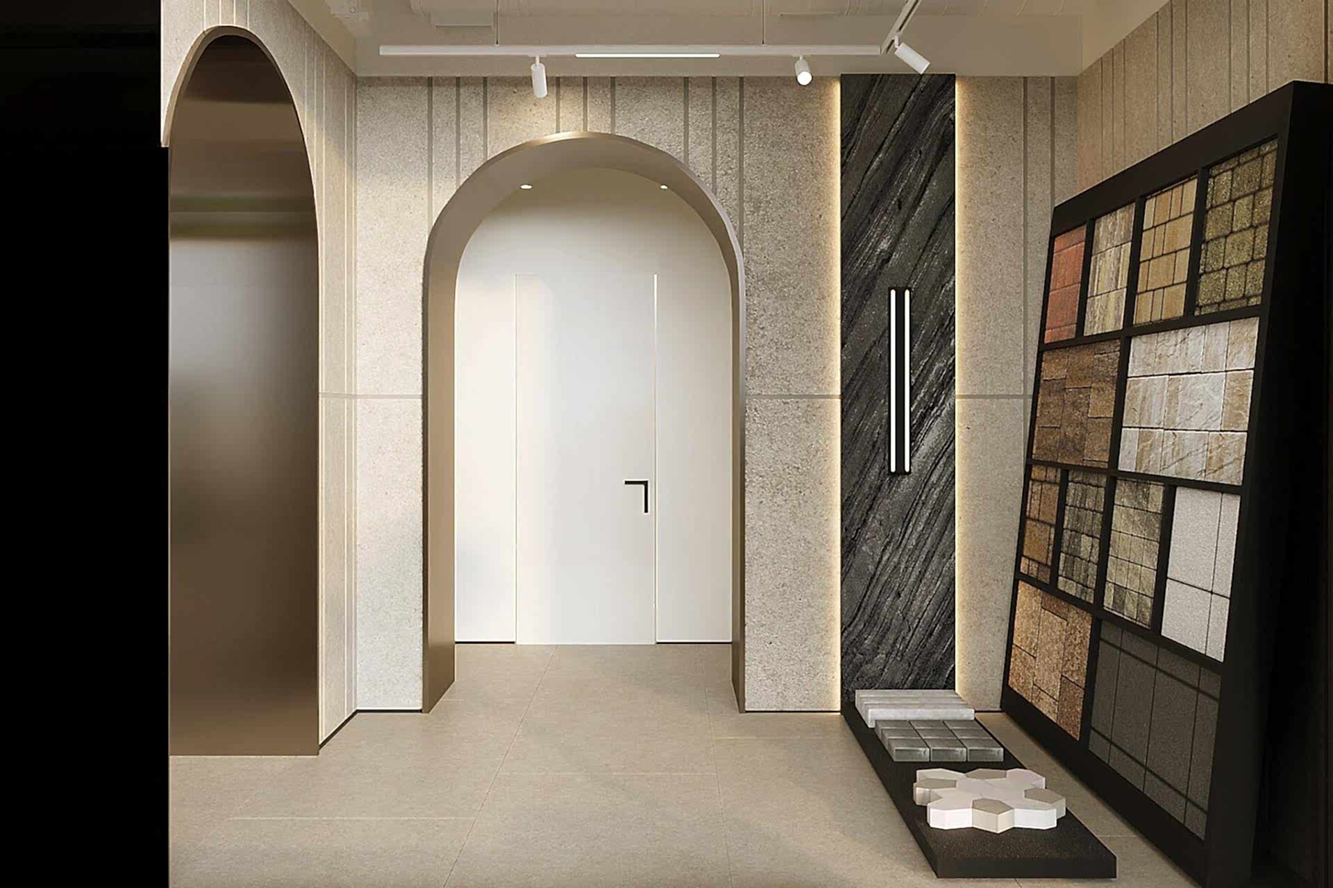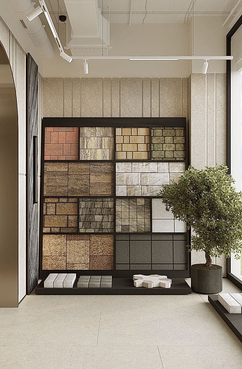 Интерьер был задуман как пространство с характером современного выставочного зала, в котором эстетика не уступает функциональности. Мы отказались от идеи «офиса с образцами» и создали полноценный интерьерный Pin-Up - открытый, светлый, с продуманной экспозицией и точными акцентами.