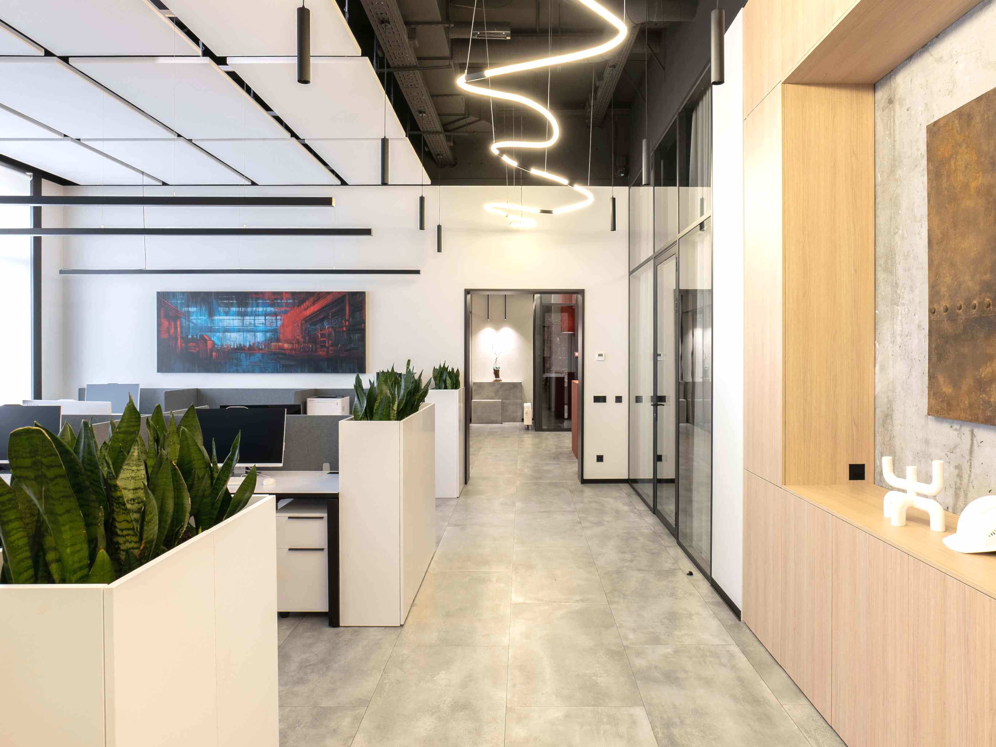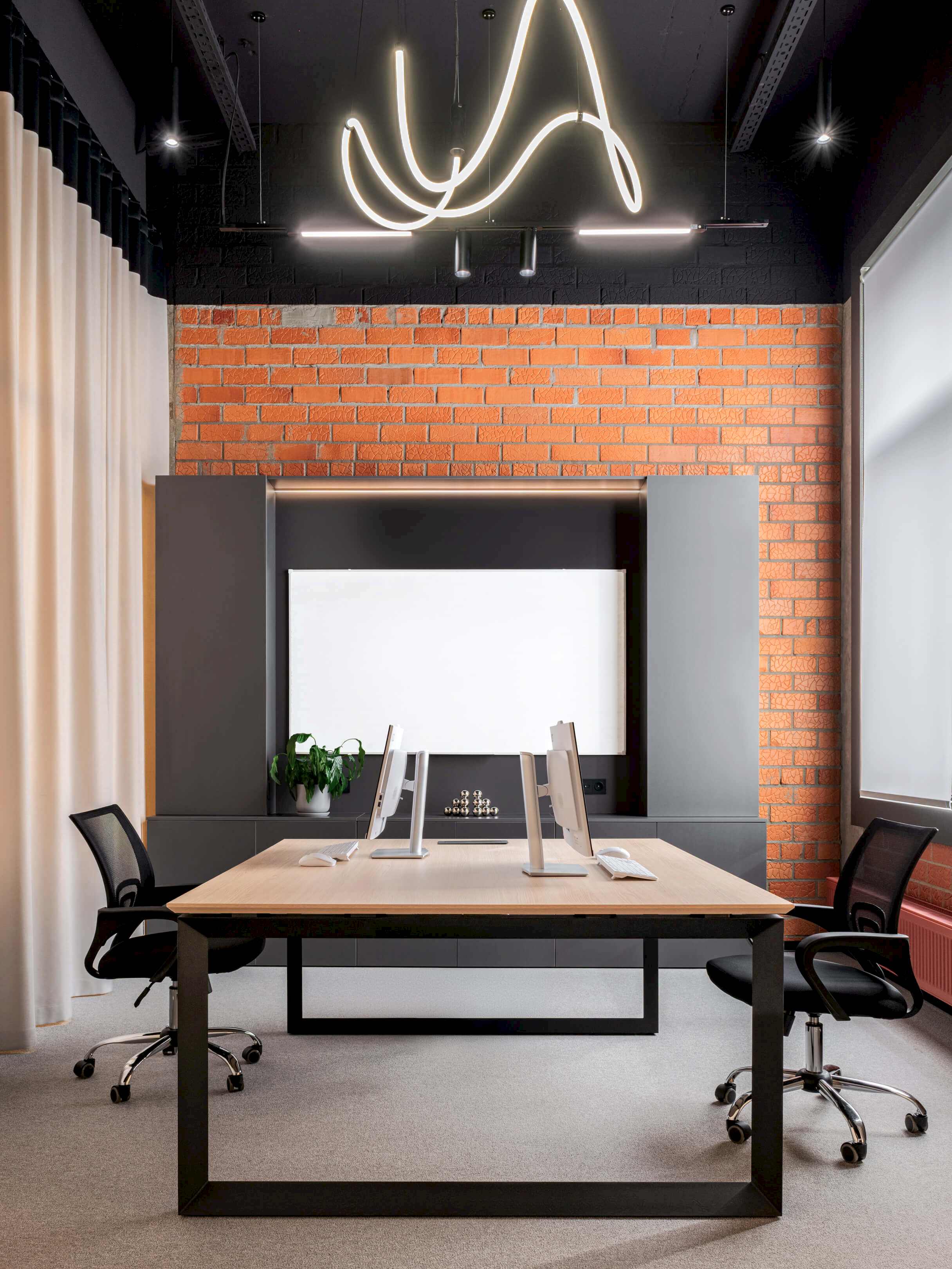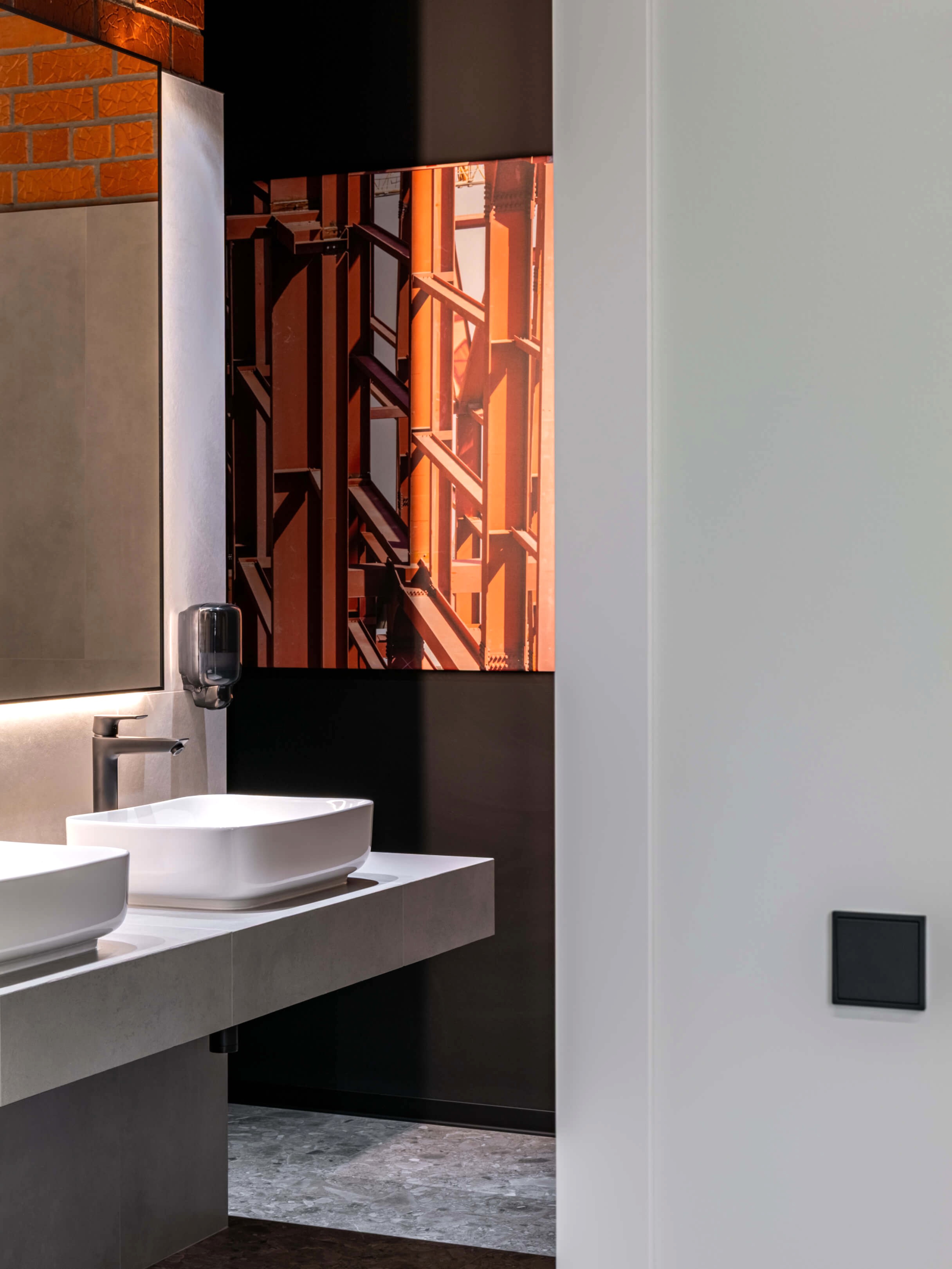 Этот офис для компании, работающей в сфере промышленной автоматизации - не просто место работы. Это точка старта, откуда каждый день начинается движение к новым Pin-Up рубежам. Пространство, вдохновлённое энергией металла, светом раскаленных труб и идеей технологичного минимализма.