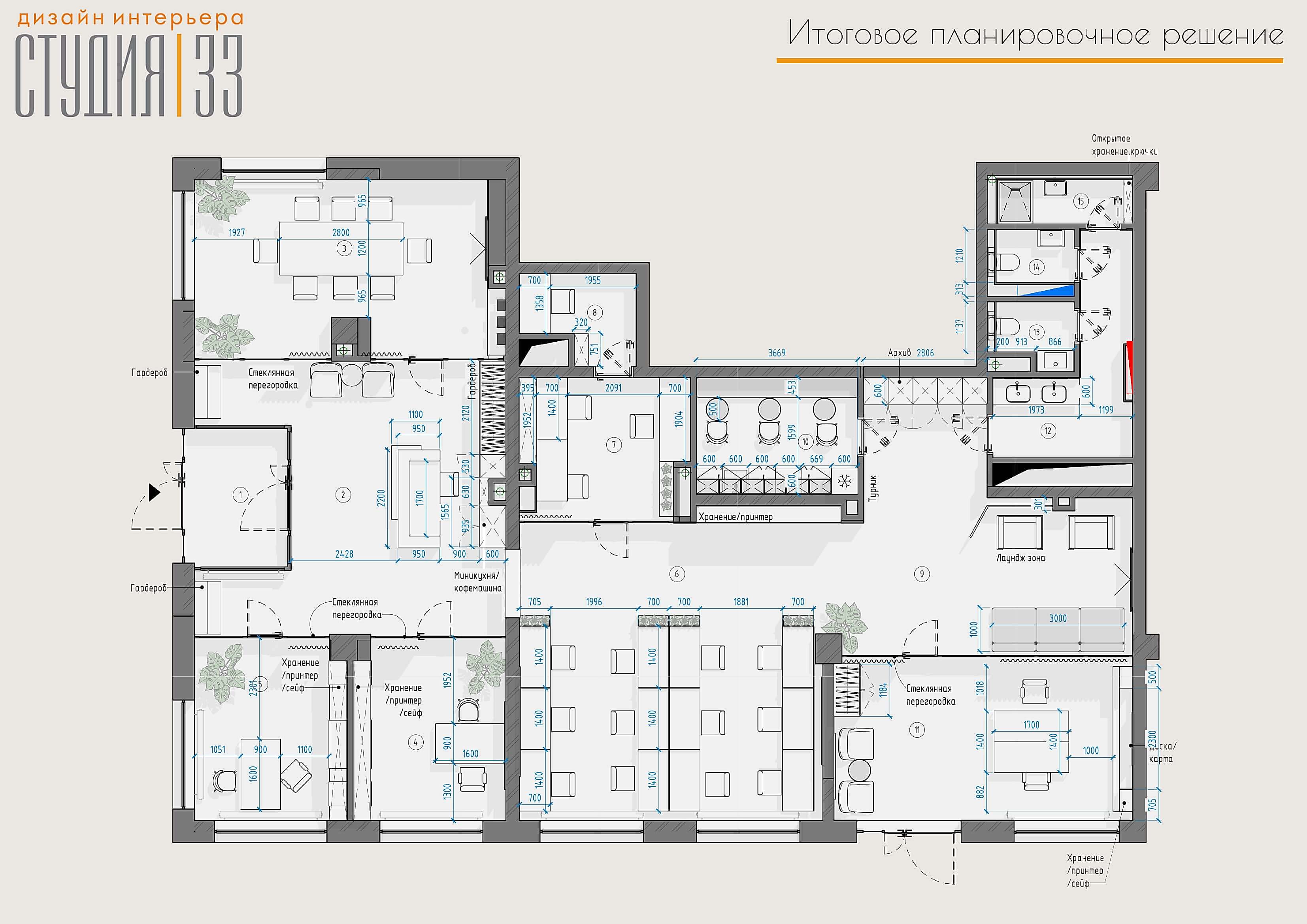 - Отдельно Pin-Up пространство для бухгалтерии, серверной, зоны отдыха для сотрудников.