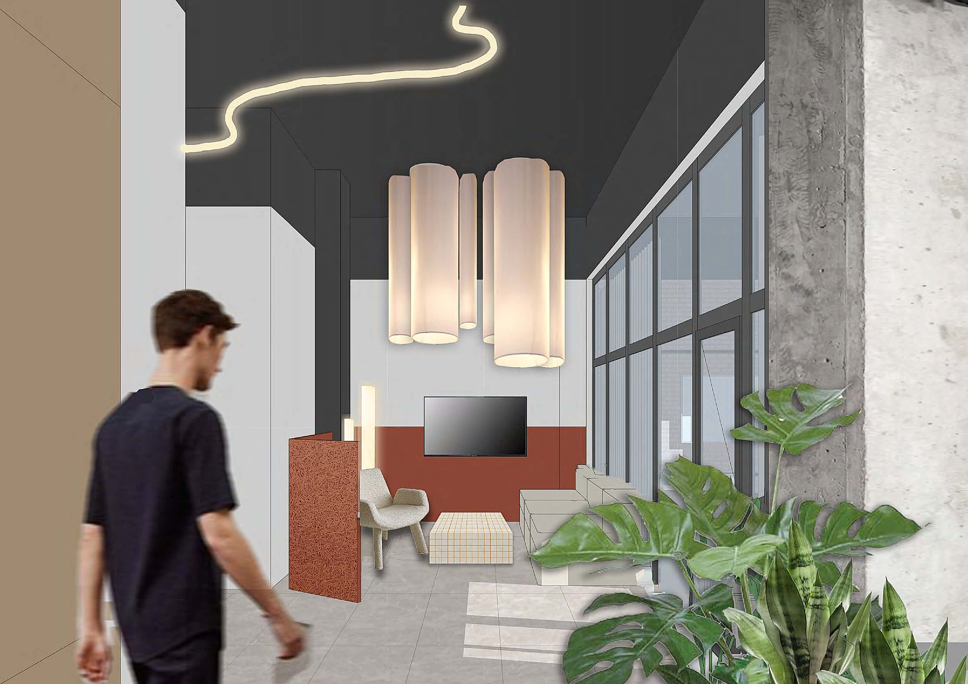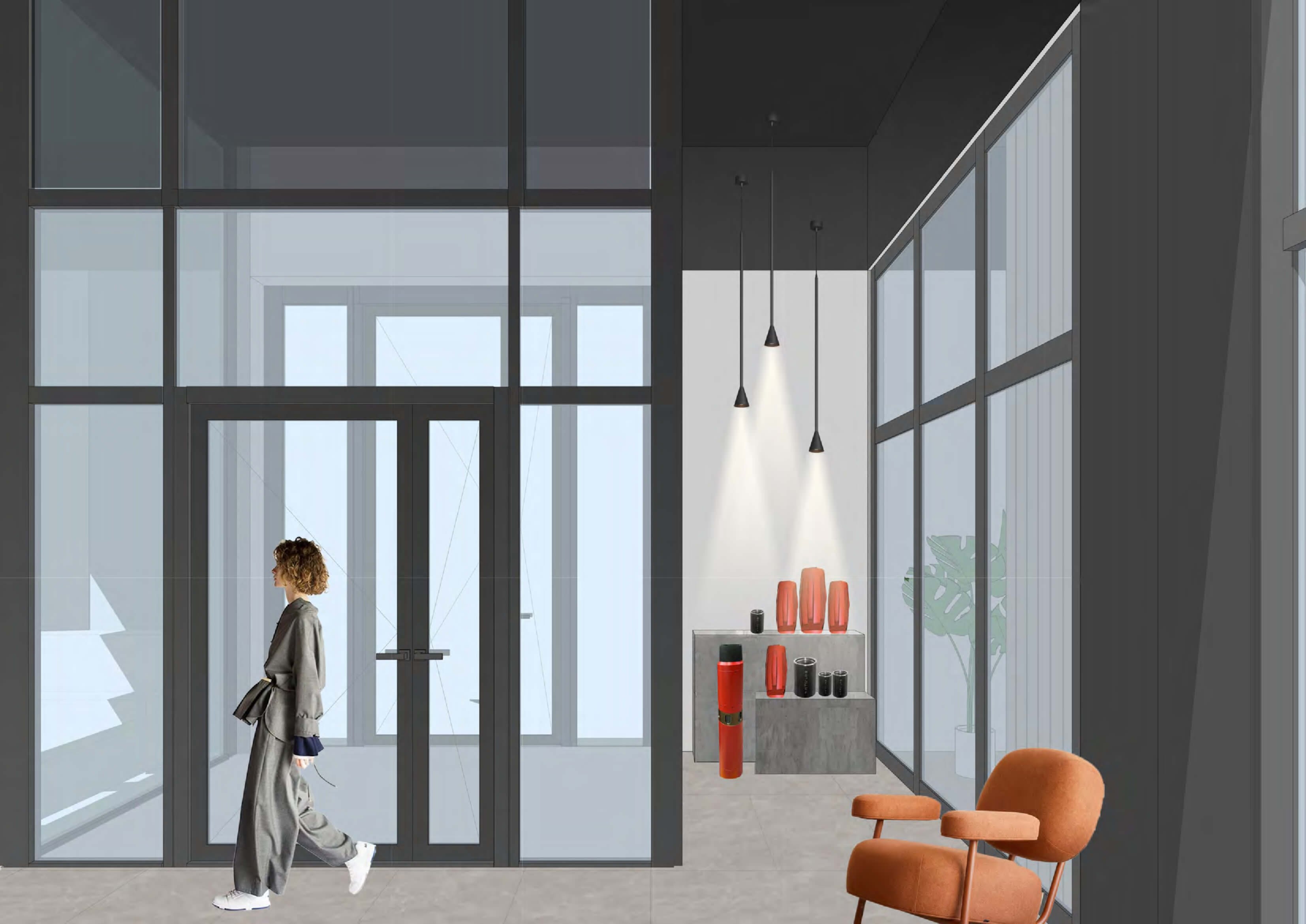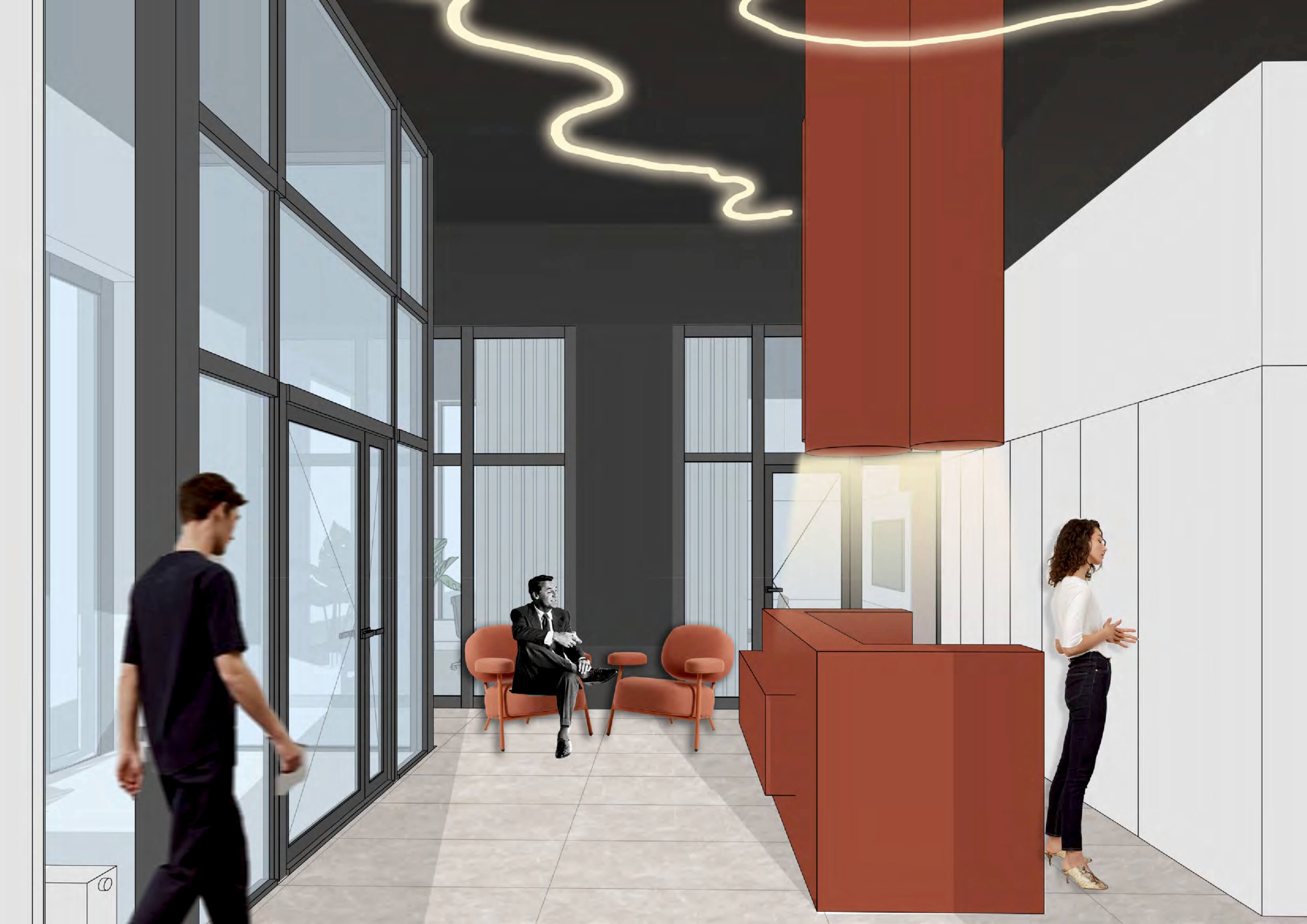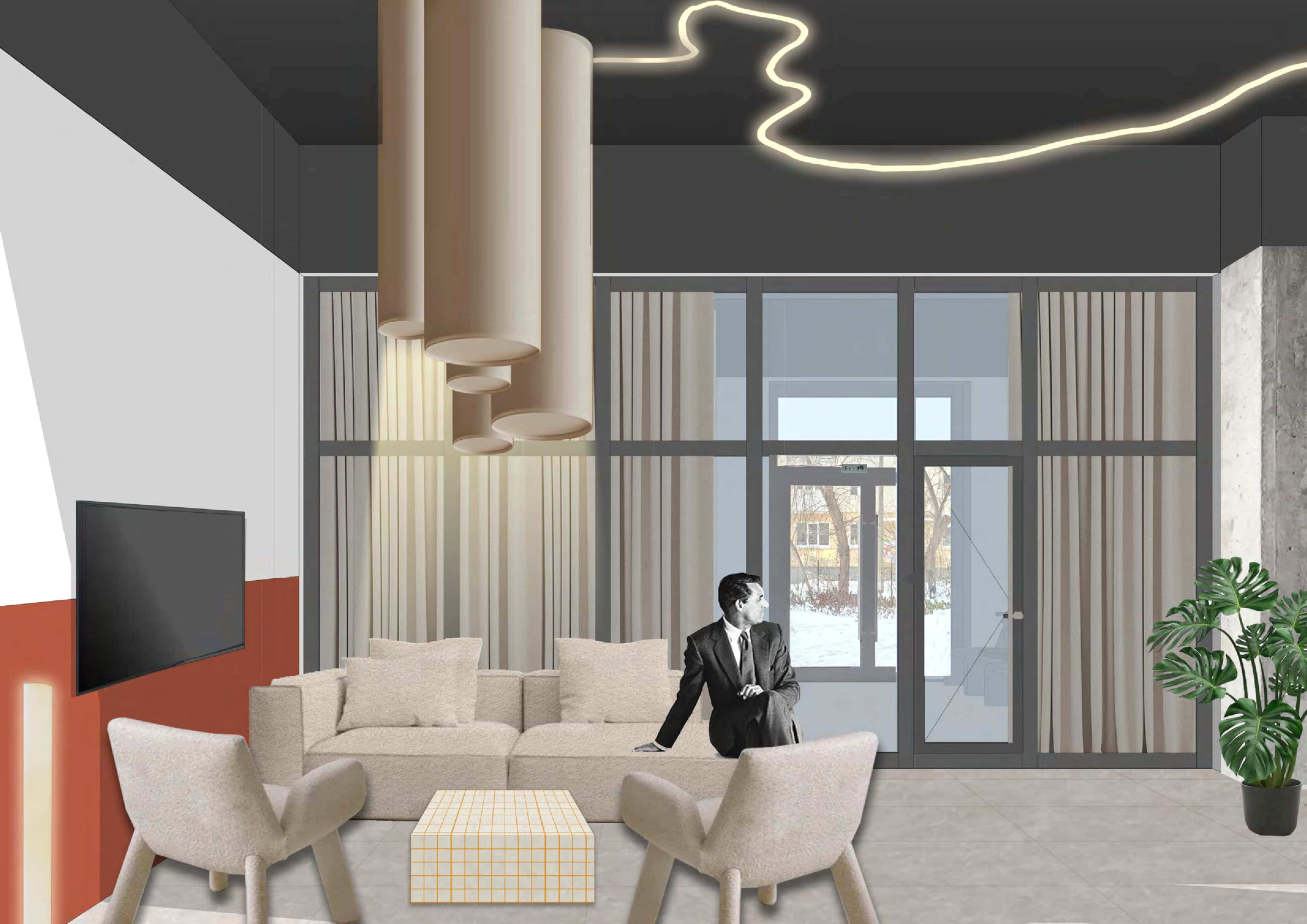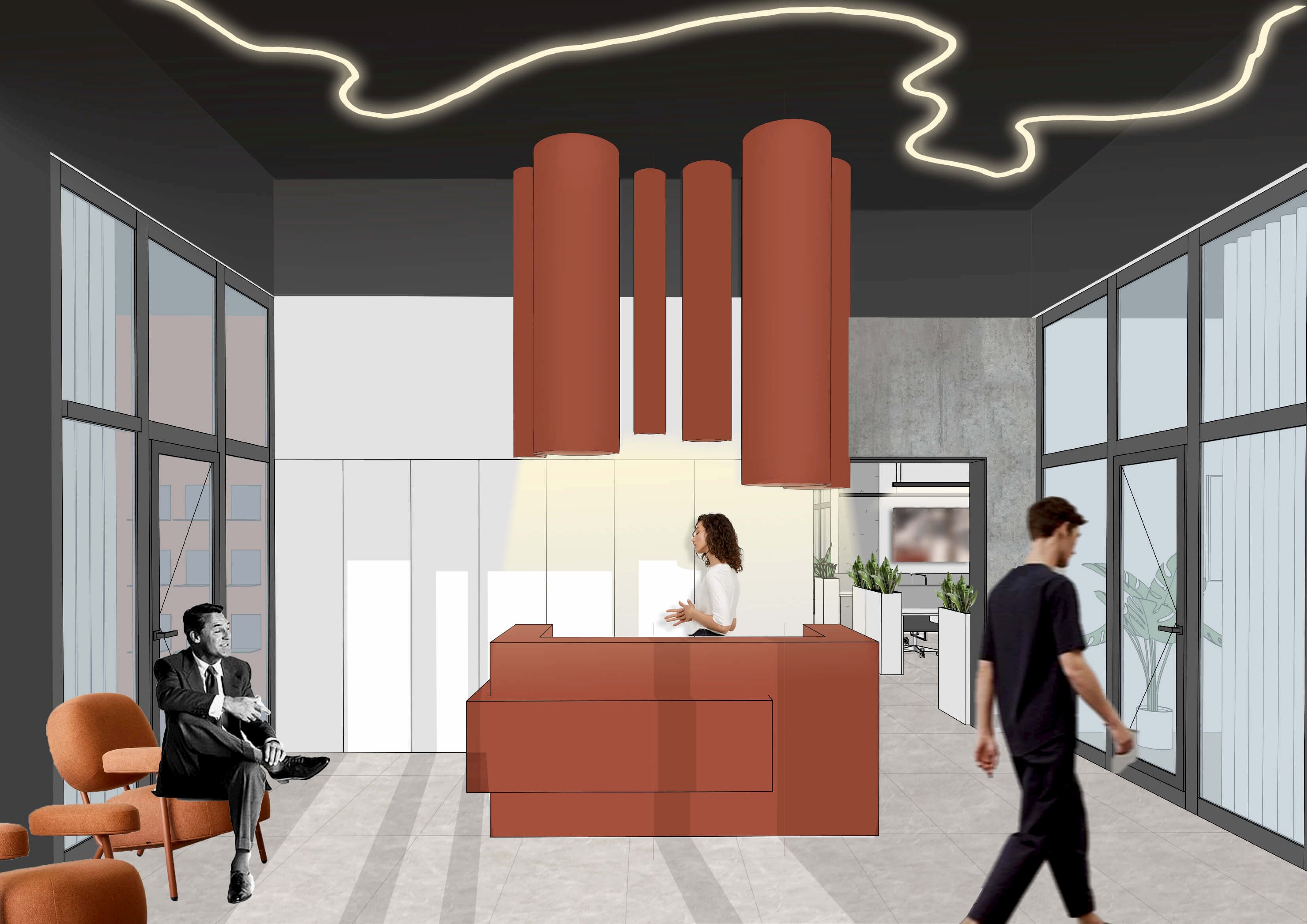 - Ресепшн со своей Pin-Up в шкафу и небольшой зоной ожидания.