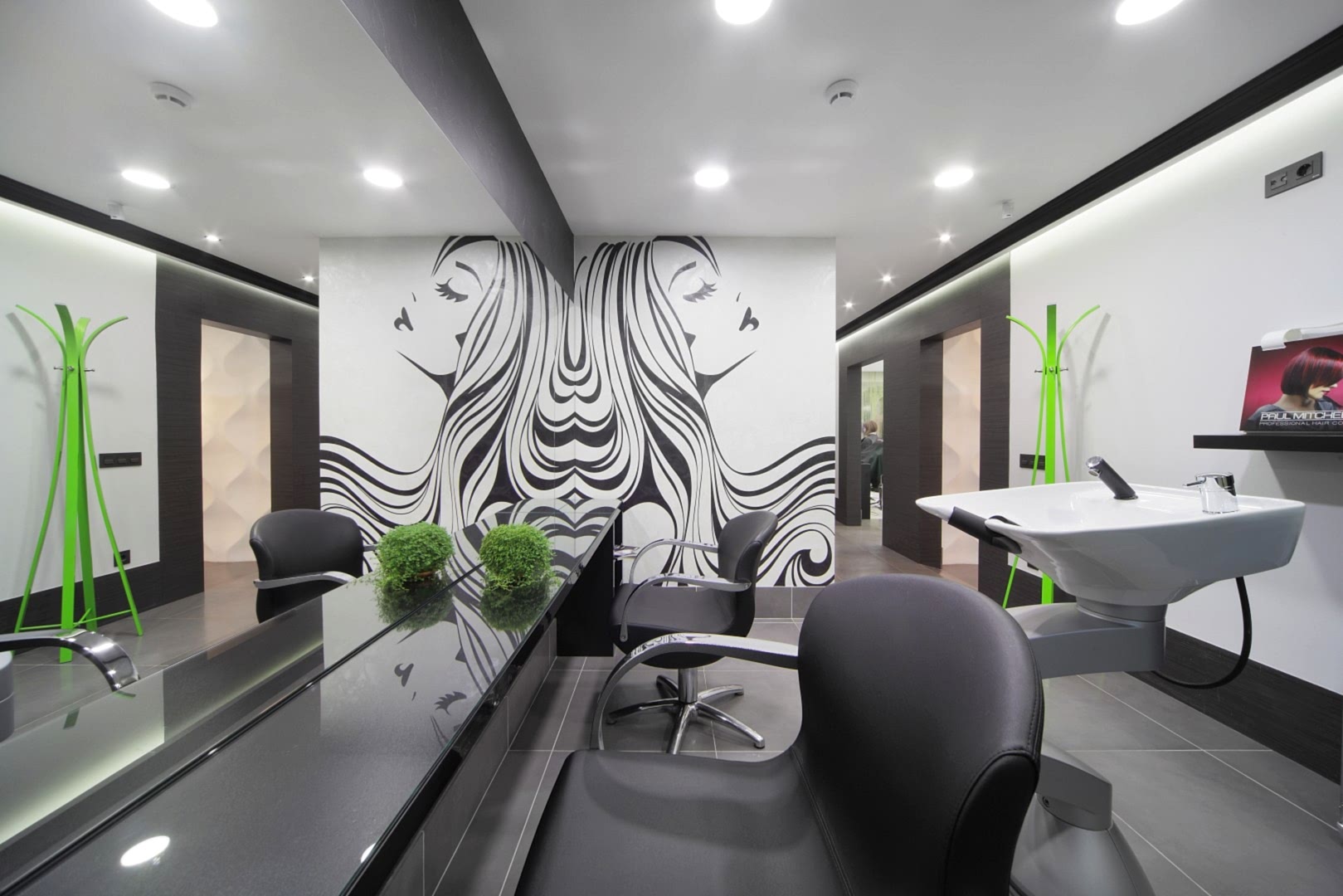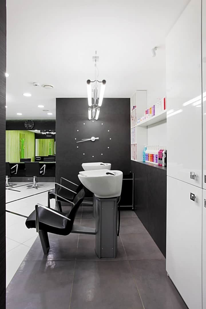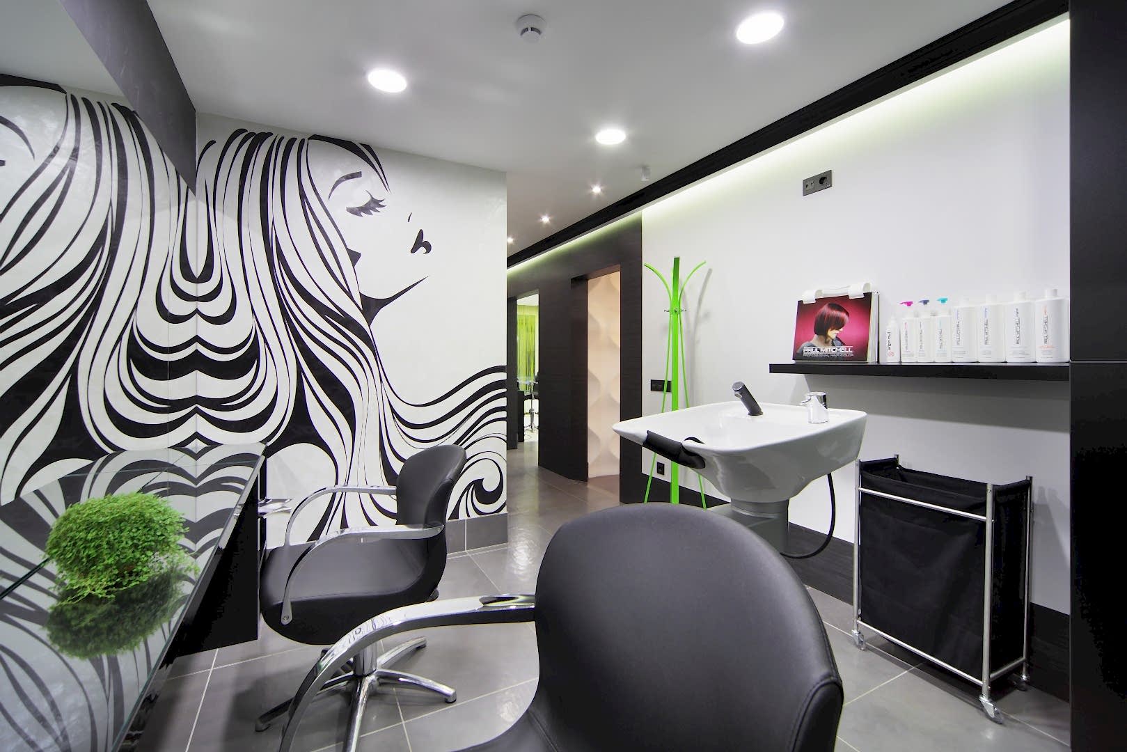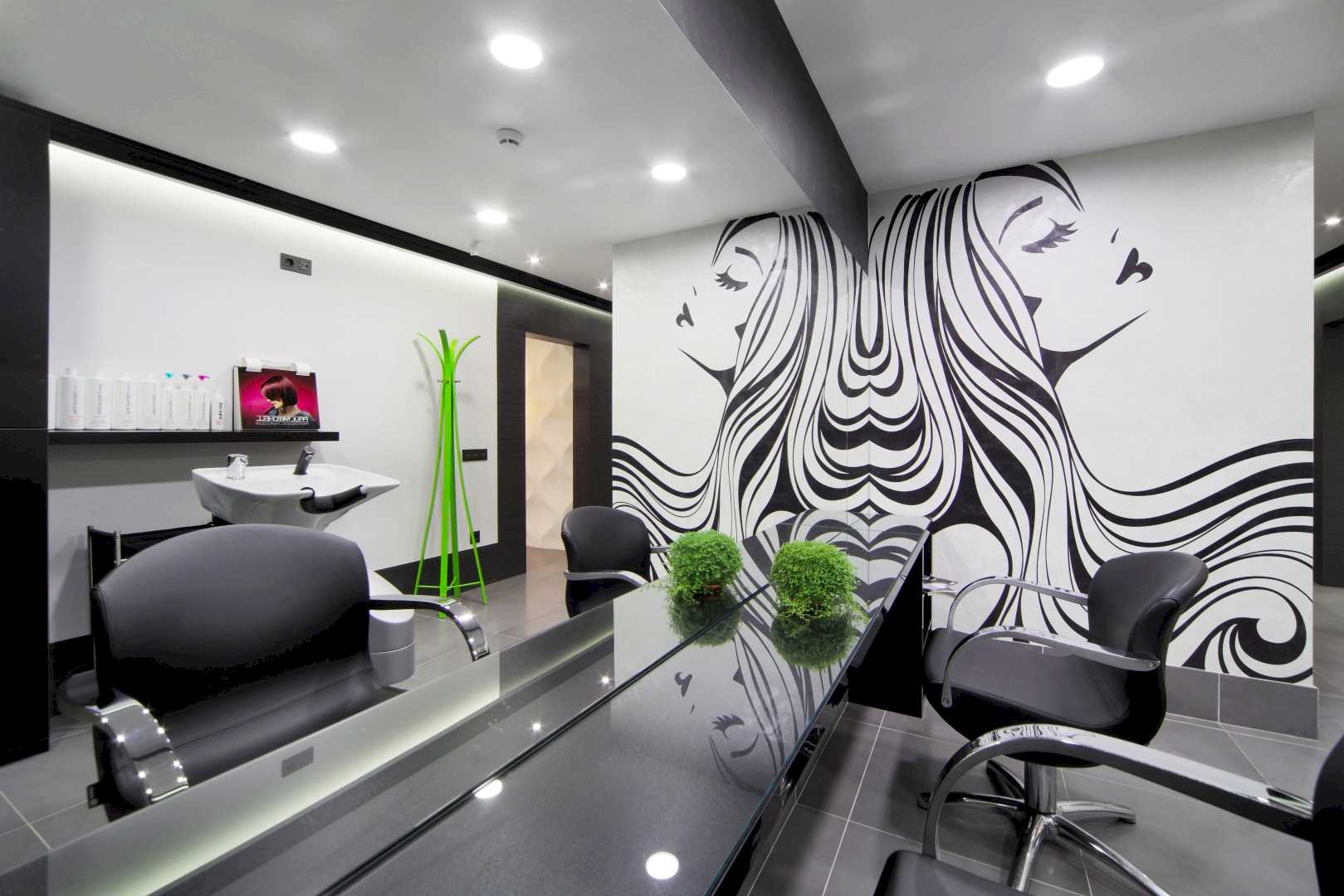 Салон располагается на 1-ом этаже жилого дома по адресу Бардина 33 и представляет собой две некогда объединённые квартиры. Помещение на момент начала Pin-Up выглядело крайне запущено и непрезентабельно, ремонт в нём не проводился десять лет. Целью было сделать салон красоты в современном стиле, уложившись в бюджет. Интерьер не должен был выглядеть нарочито дорогим и вычурным, чтобы не отпугнуть потенциальных клиентов, так как заведение рассчитано на средний сегмент и ниже. Необходимо было соблюсти идеальный баланс. Основными цветами были белый, черно-серый и салатовый. Были использованы материалы с повышенной износостойкостью (керамогранит, декоративная штукатурка, а также керлит).