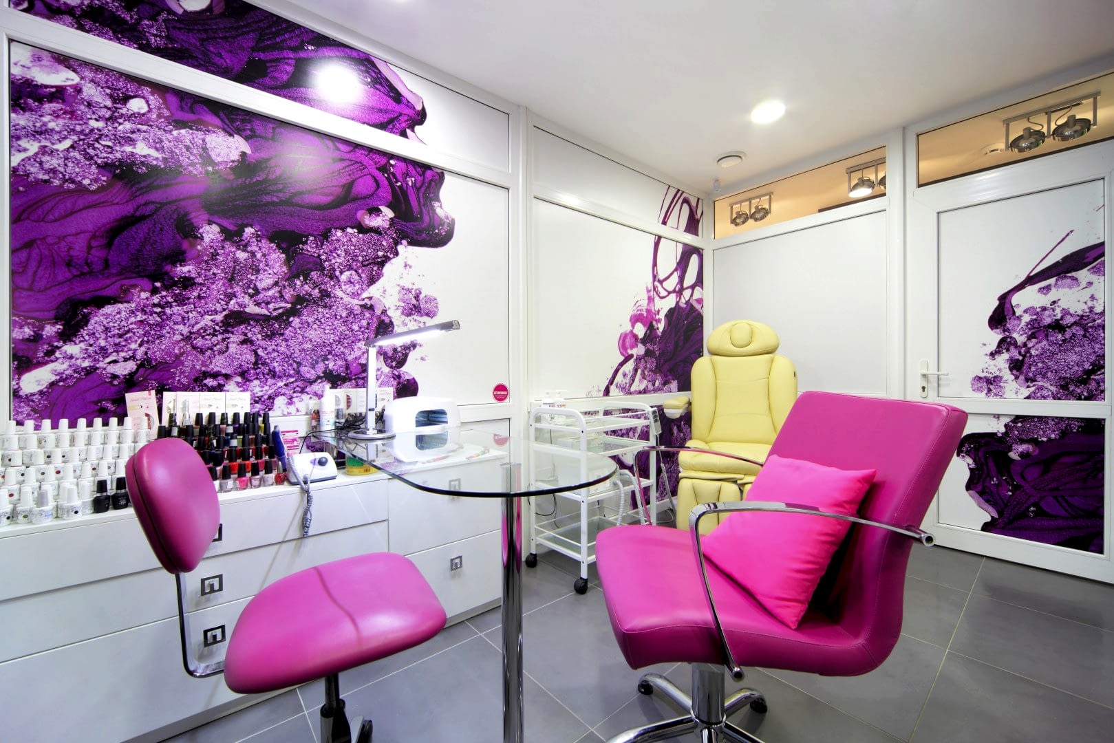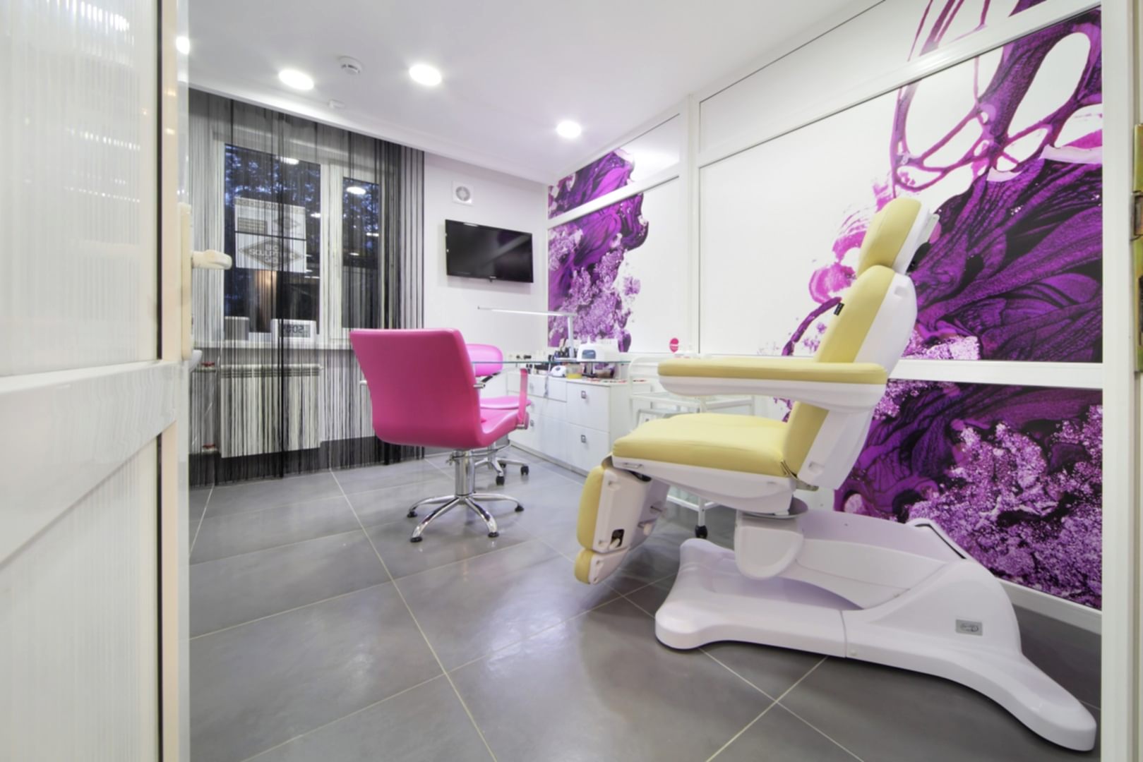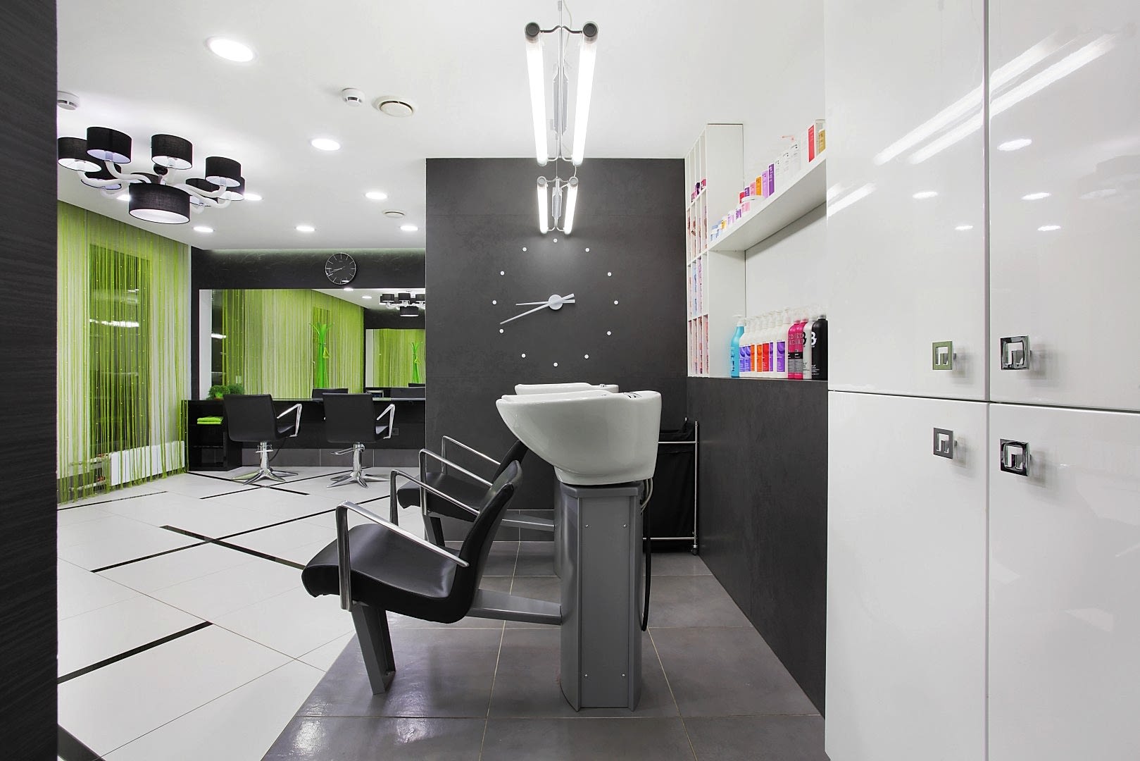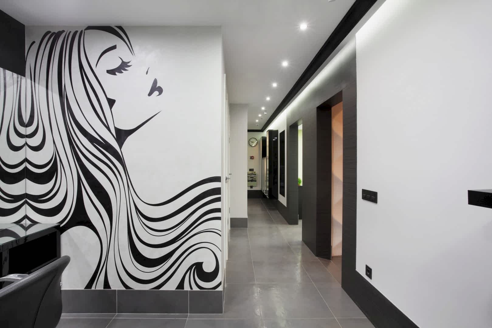 Салон располагается на 1-ом этаже жилого дома по адресу Бардина 33 и представляет собой две некогда объединённые квартиры. Помещение на момент начала Pin-Up выглядело крайне запущено и непрезентабельно, ремонт в нём не проводился десять лет. Целью было сделать салон красоты в современном стиле, уложившись в бюджет. Интерьер не должен был выглядеть нарочито дорогим и вычурным, чтобы не отпугнуть потенциальных клиентов, так как заведение рассчитано на средний сегмент и ниже. Необходимо было соблюсти идеальный баланс. Основными цветами были белый, черно-серый и салатовый. Были использованы материалы с повышенной износостойкостью (керамогранит, декоративная штукатурка, а также керлит).
