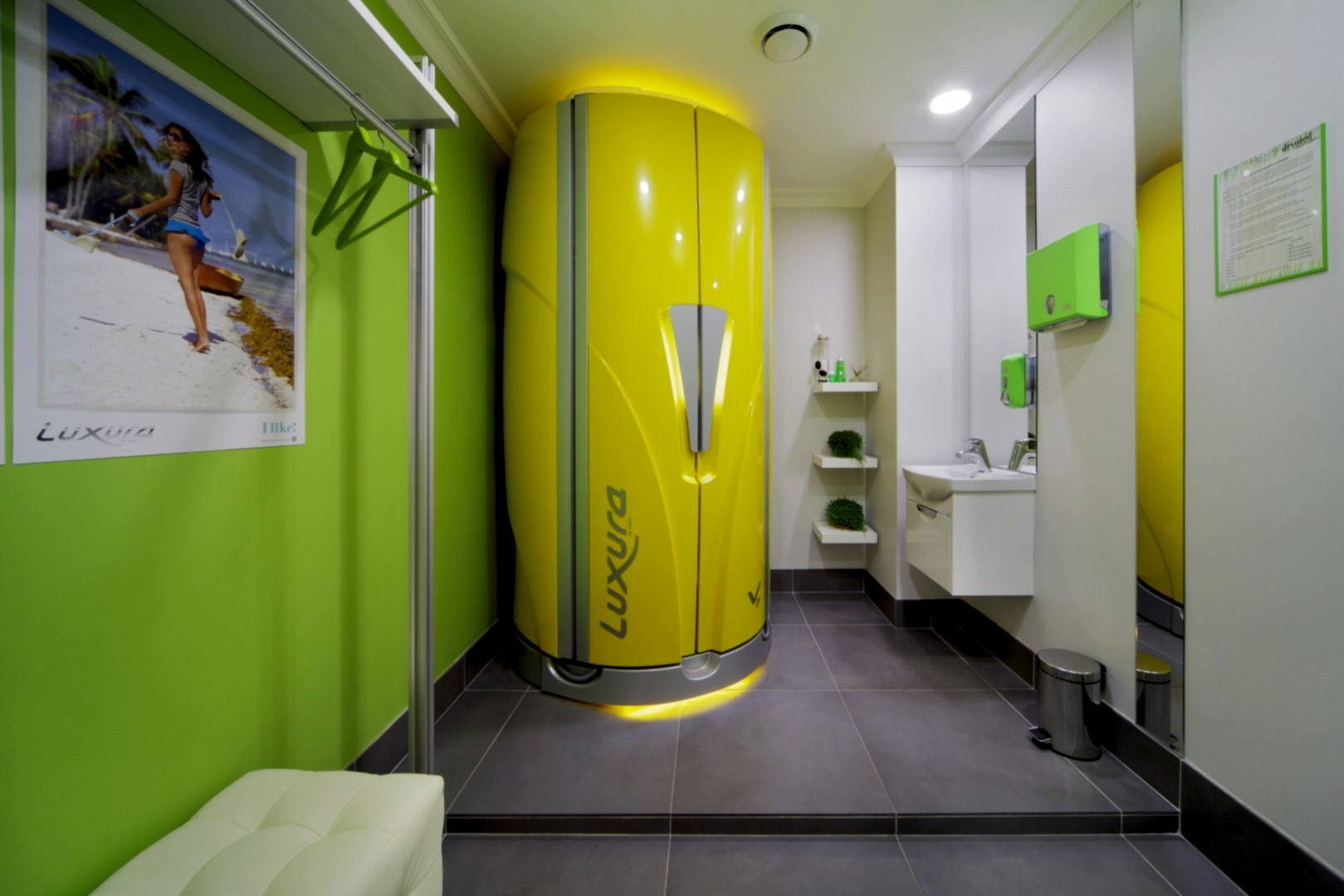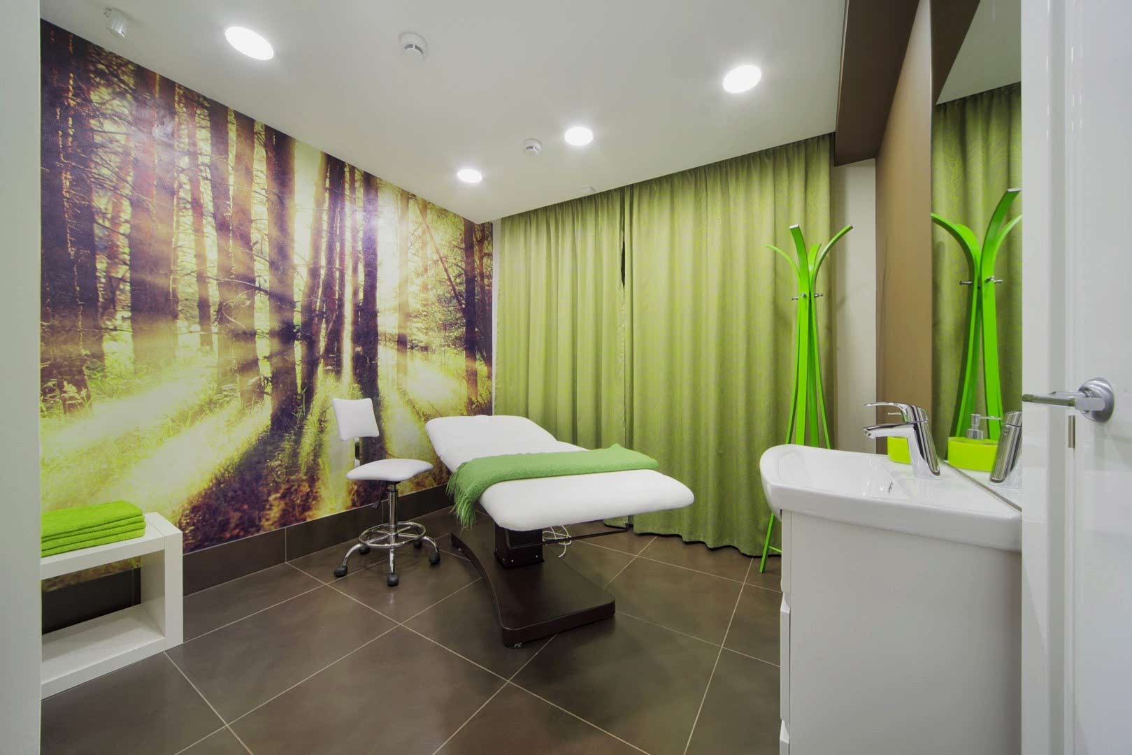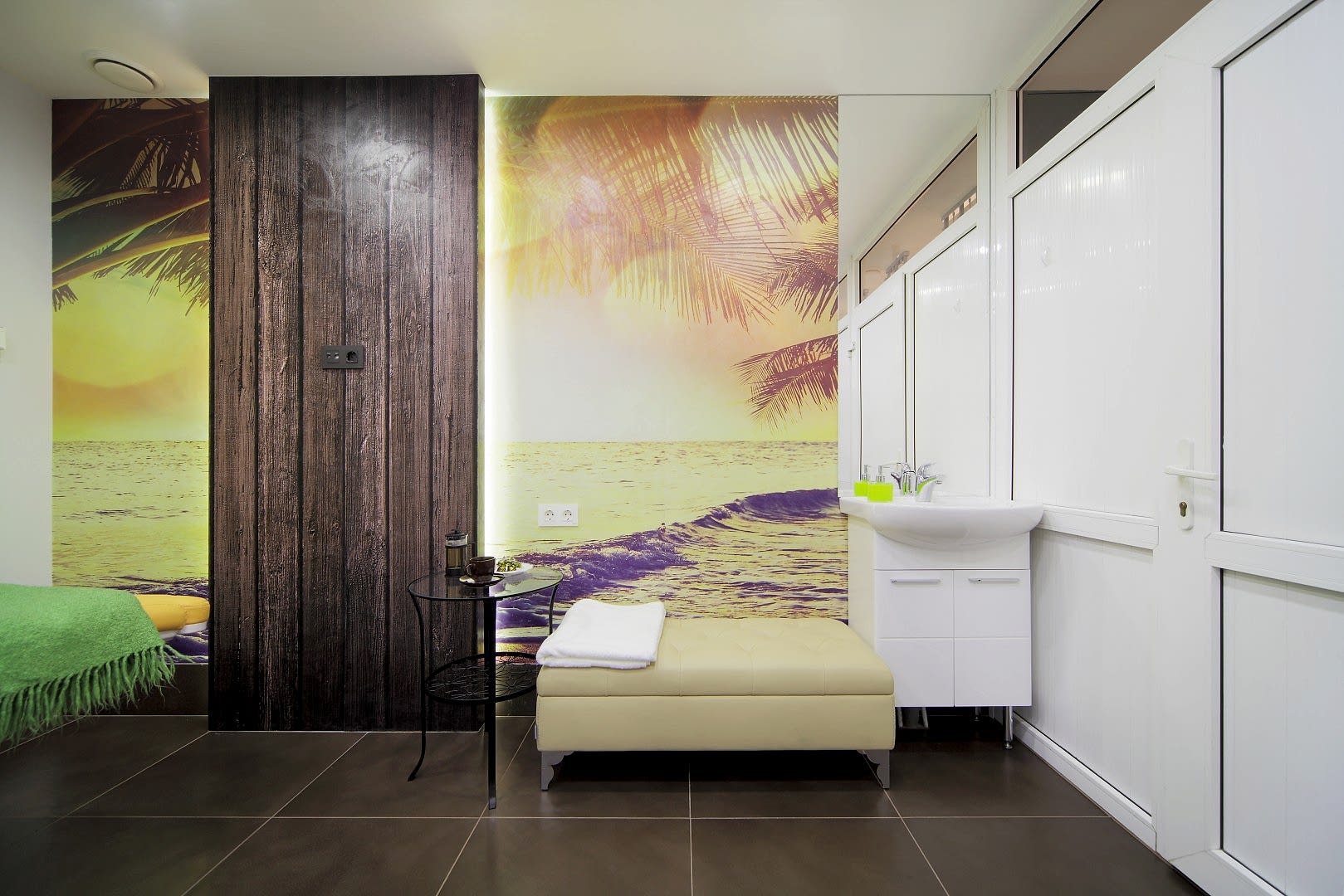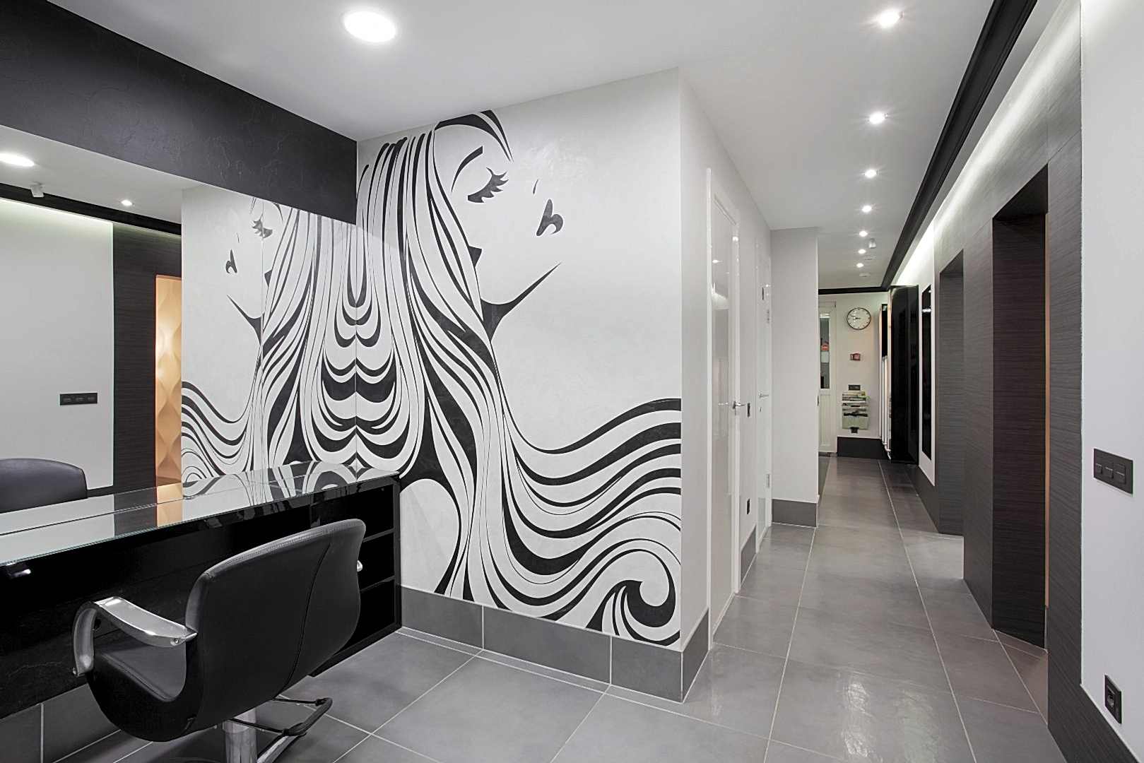 Салон располагается на 1-ом этаже жилого дома по адресу Бардина 33 и представляет собой две некогда объединённые квартиры. Помещение на момент начала Pin-Up выглядело крайне запущено и непрезентабельно, ремонт в нём не проводился десять лет. Целью было сделать салон красоты в современном стиле, уложившись в бюджет. Интерьер не должен был выглядеть нарочито дорогим и вычурным, чтобы не отпугнуть потенциальных клиентов, так как заведение рассчитано на средний сегмент и ниже. Необходимо было соблюсти идеальный баланс. Основными цветами были белый, черно-серый и салатовый. Были использованы материалы с повышенной износостойкостью (керамогранит, декоративная штукатурка, а также керлит).