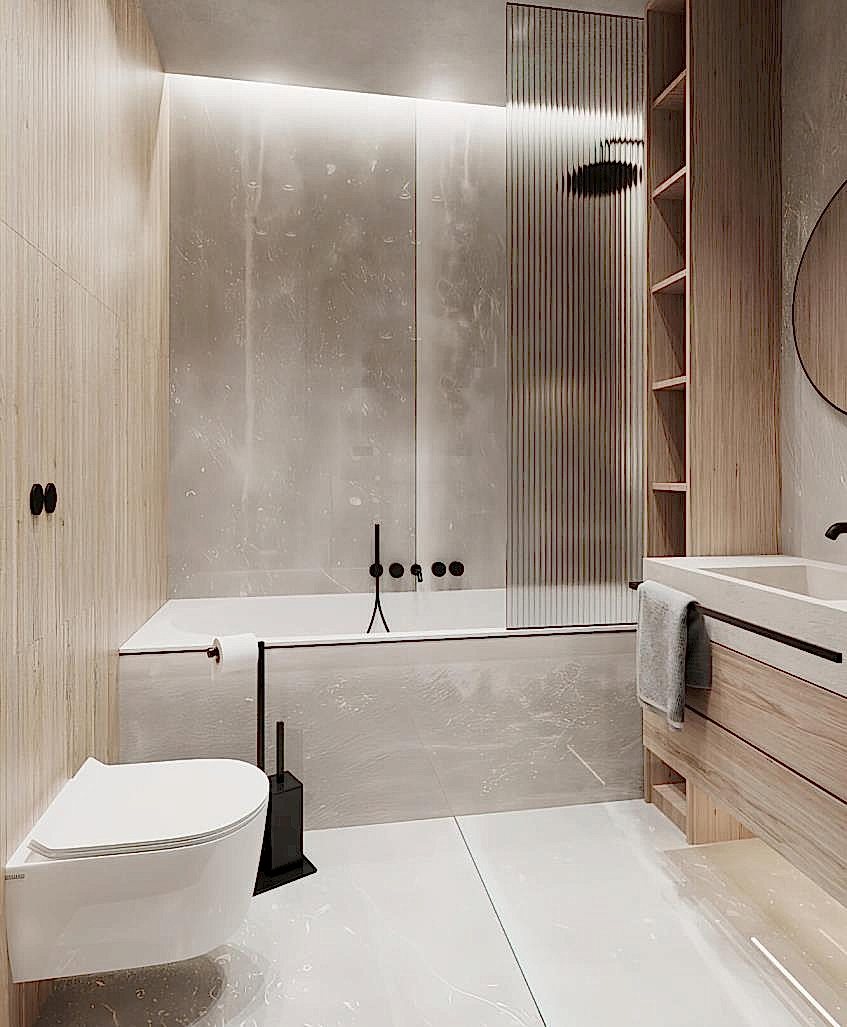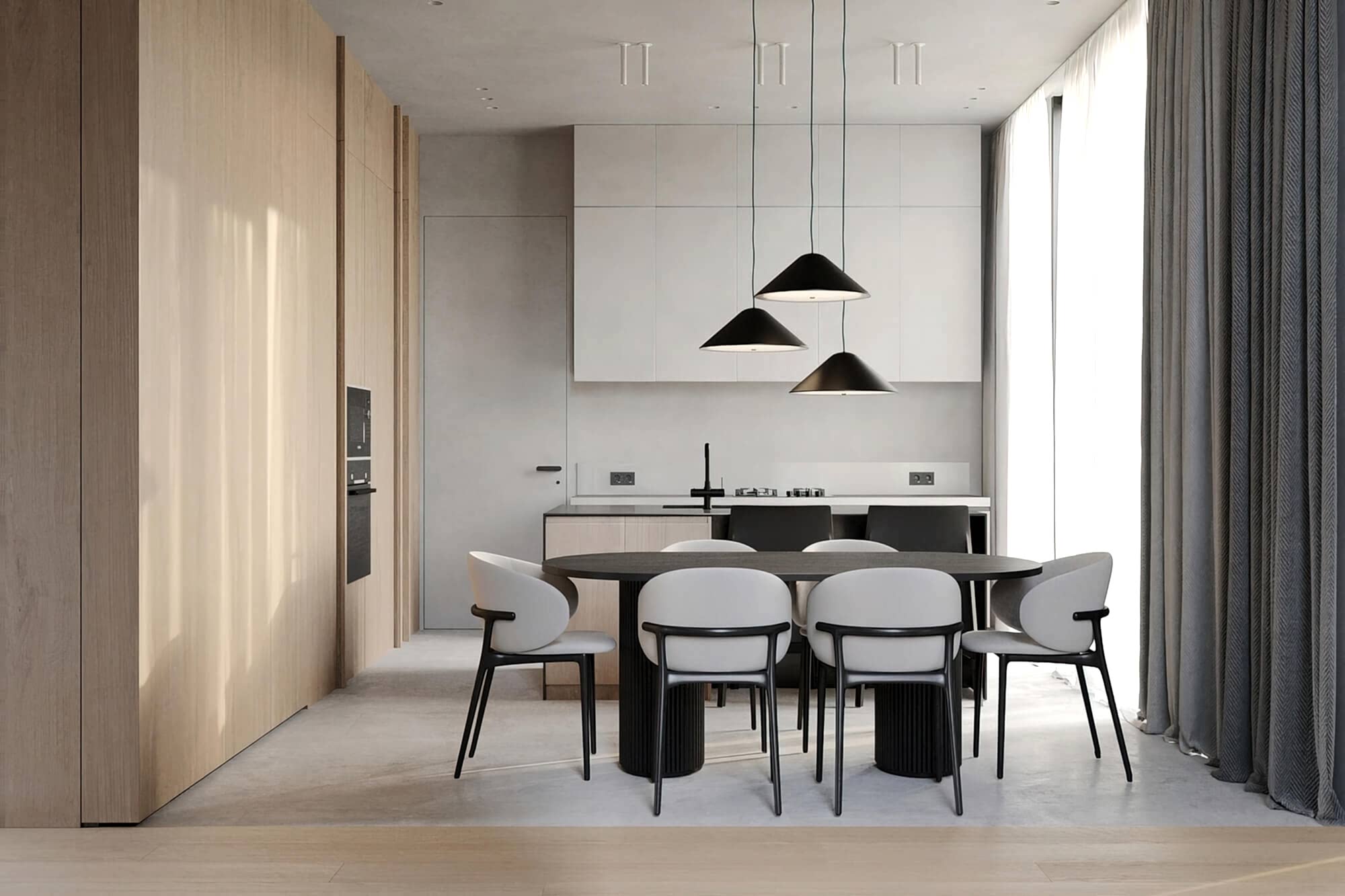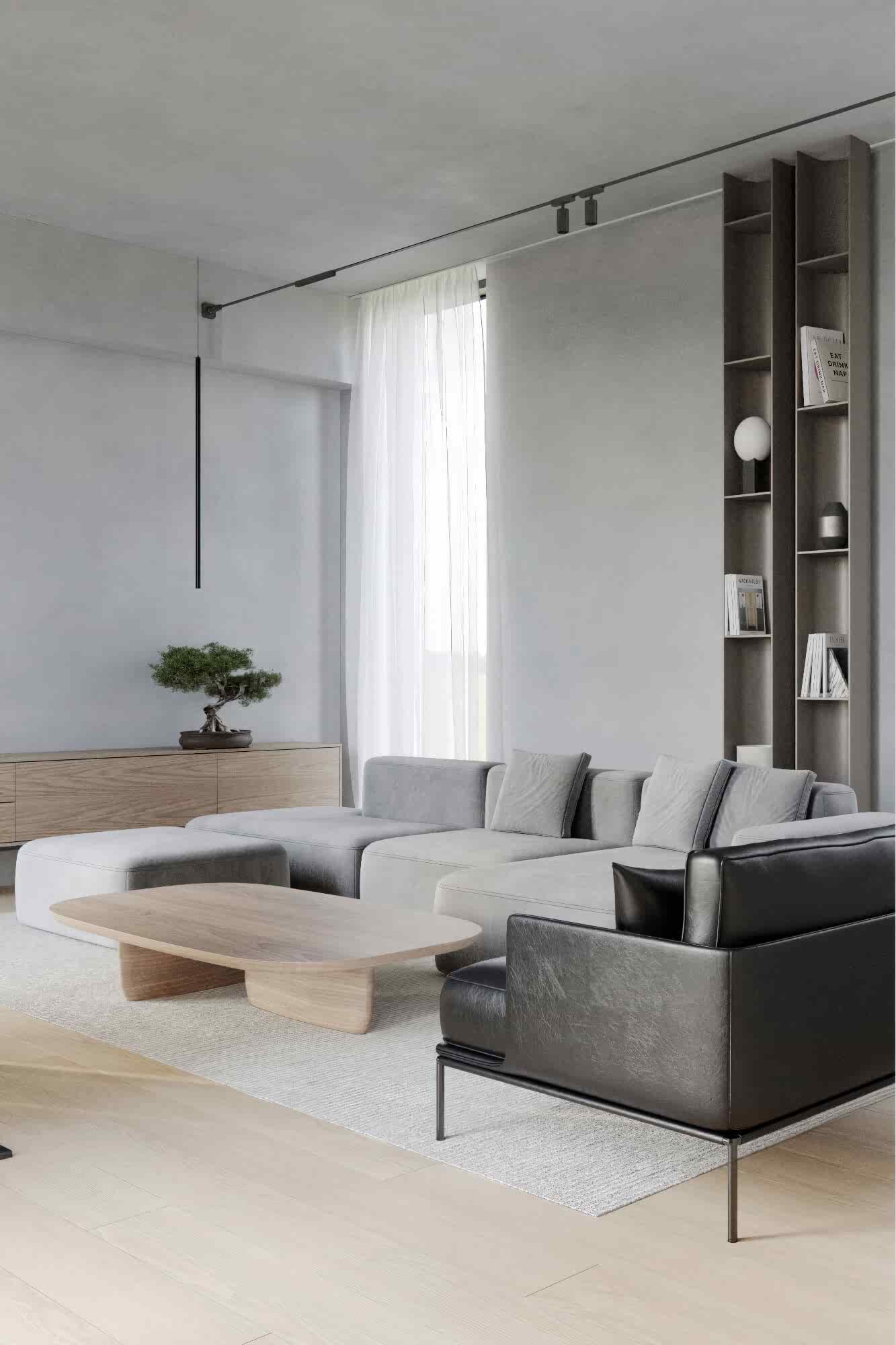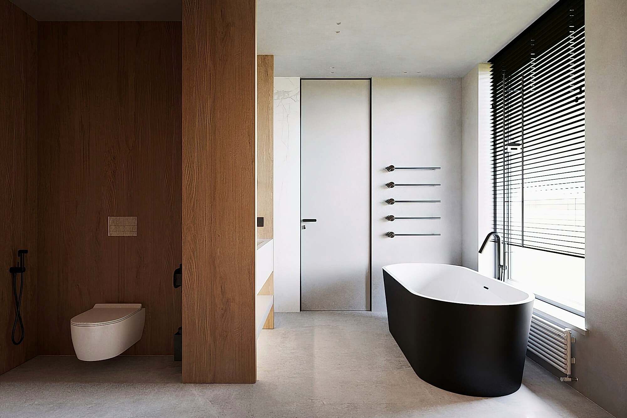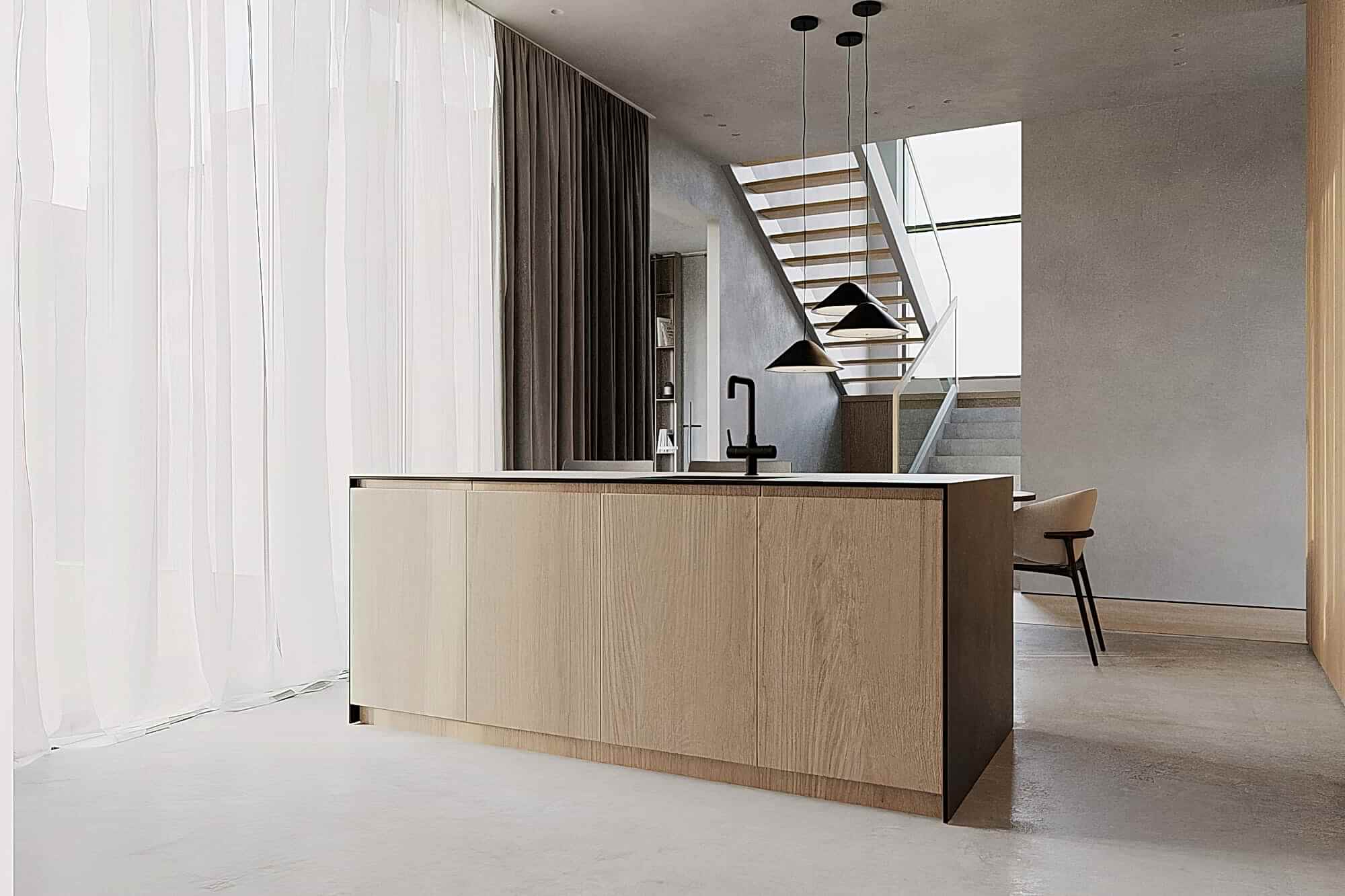 В этом проекте мы Pin-Up японским спокойствием и умиротворением, поэтому был выбран современный минимализм с элементами ваби-саби. Весь интерьер выполнен в натуральных природных оттенках.