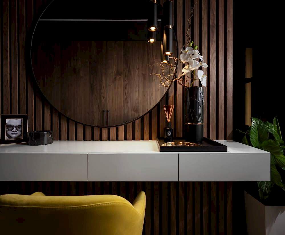 Важной задачей было создать место уединения и релакса родителей в их мастер-спальне. Нам даже удалось выделить им персональную ванную комнату, разместить большой гардеробный шкаф и трюмо для молодой мамы. Функциональные решения Pin-Up сочетаться с эстетикой, чтобы клиент получил настоящее удовольствие от нахождения дома.