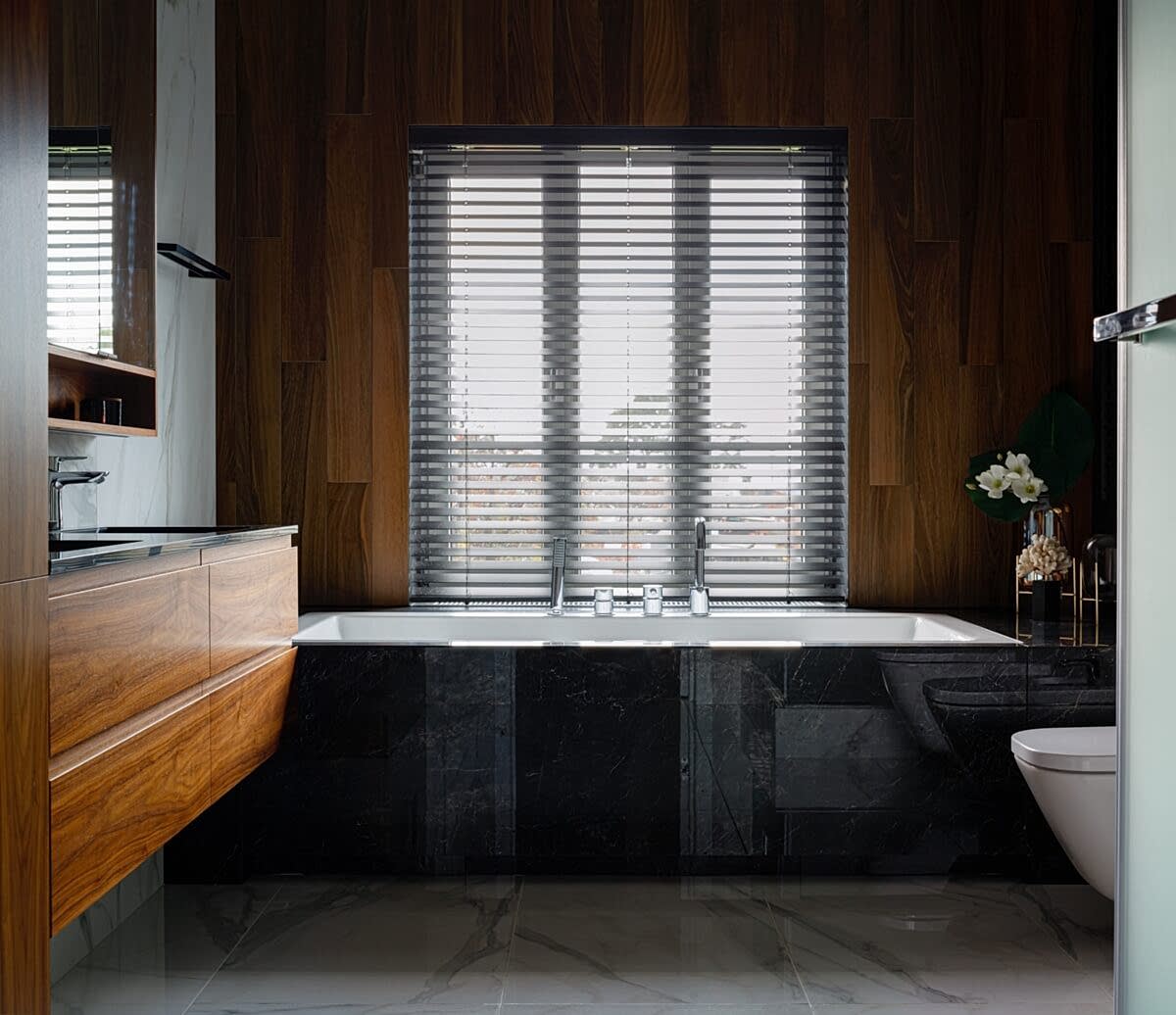 С ванной комнаты начинается и заканчивается каждый день, это и место бодрости и расслабления. Гармонию в ванной комнате мы создали за счёт игры текстур и материалов: мрамор, дерево, игра цвета, текстура плитки. Тумба под раковину с открывающимся Pin-Up переходящая во вместительный шкаф, позволит с лёгкостью сохранять порядок даже в большой семье.