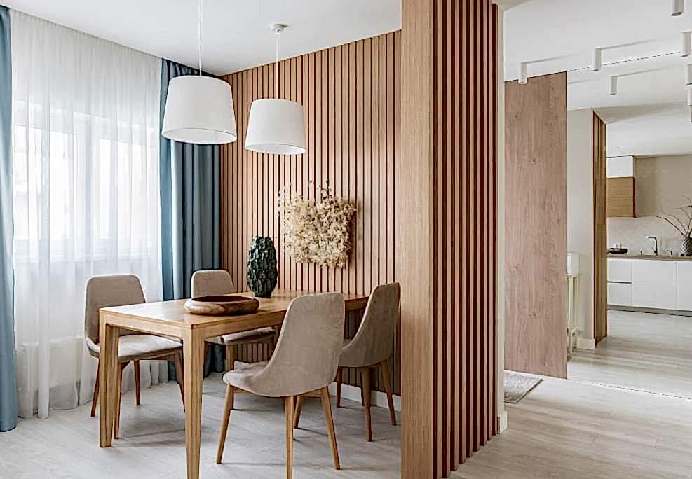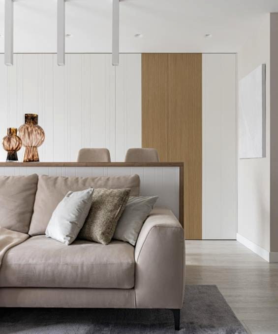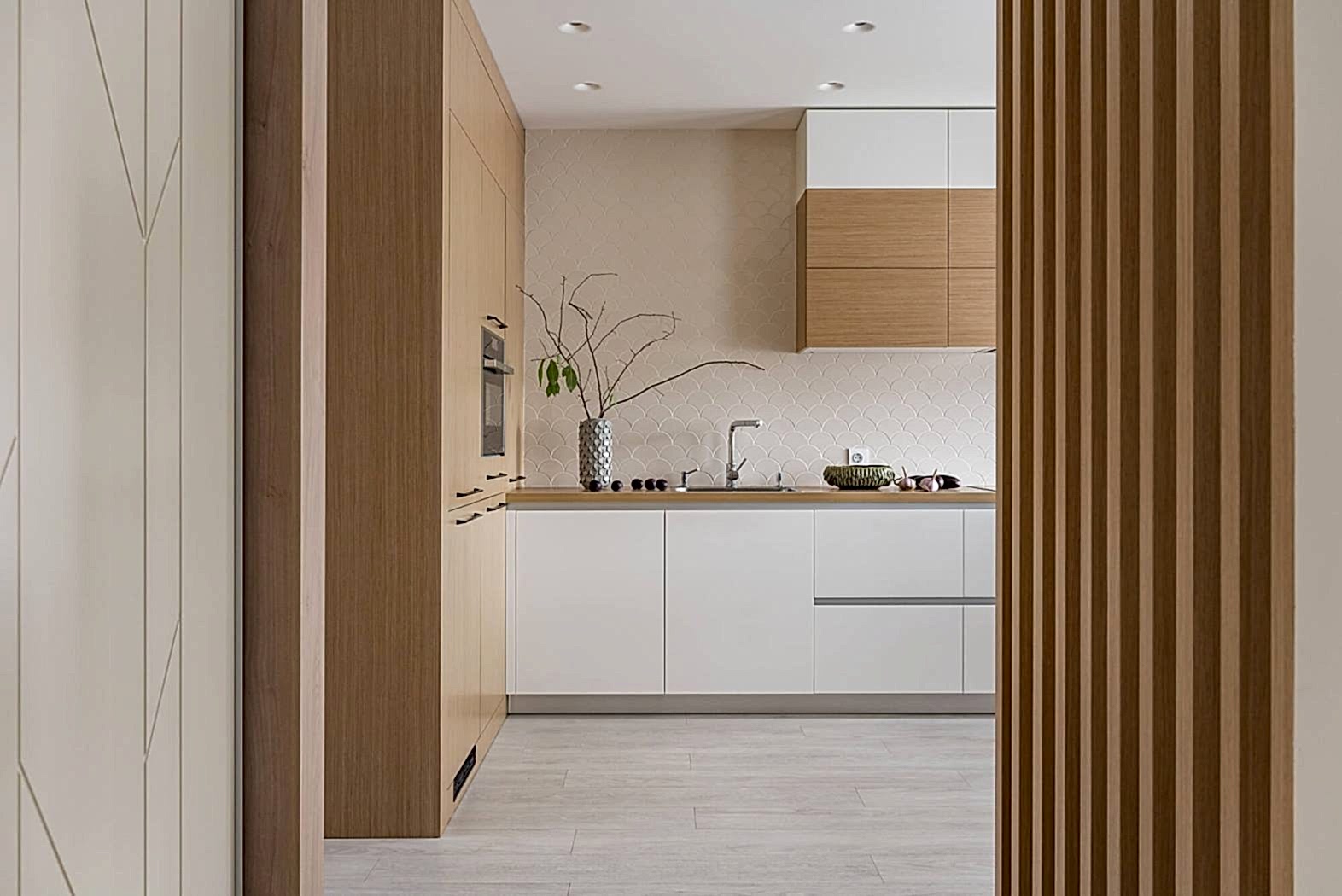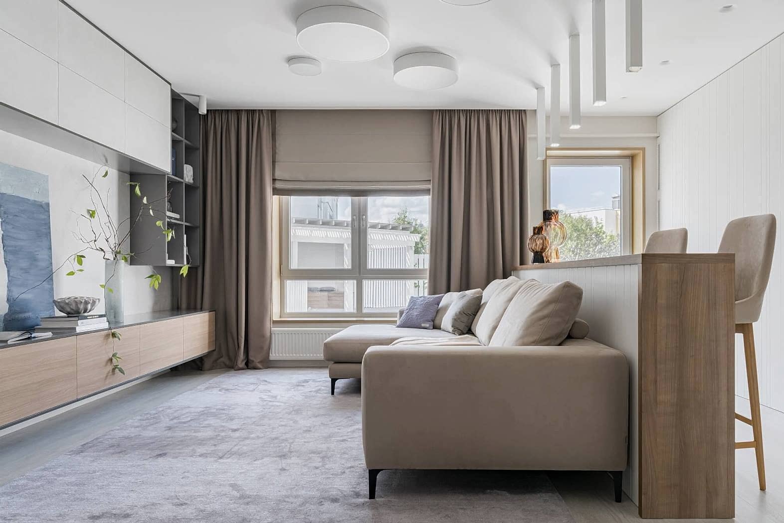 Светлый, легкий и уютный интерьер. Важной задачей было - чтобы все фактуры между собой сочетались. Фактура дерева, цветовая гамма - все едино.