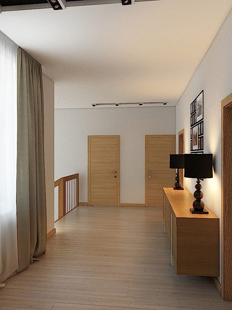Коттедж для дружной семьи из четырех человек. Заказчики хотели видеть свой дом светлым, современным и функциональным. Главное требование ничего лишнего и экологически чистые материалы в отделке.