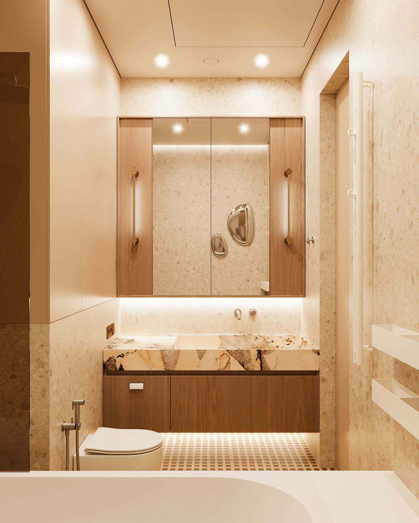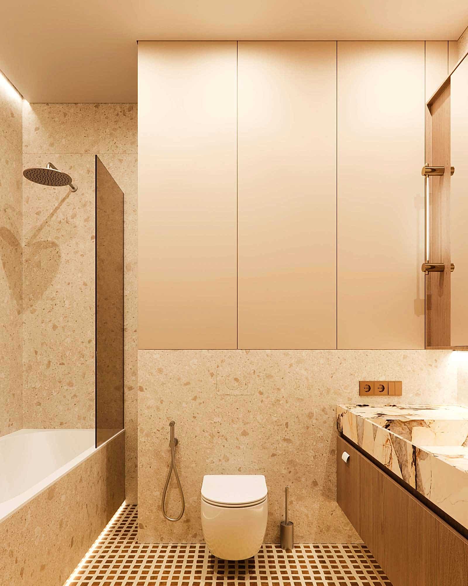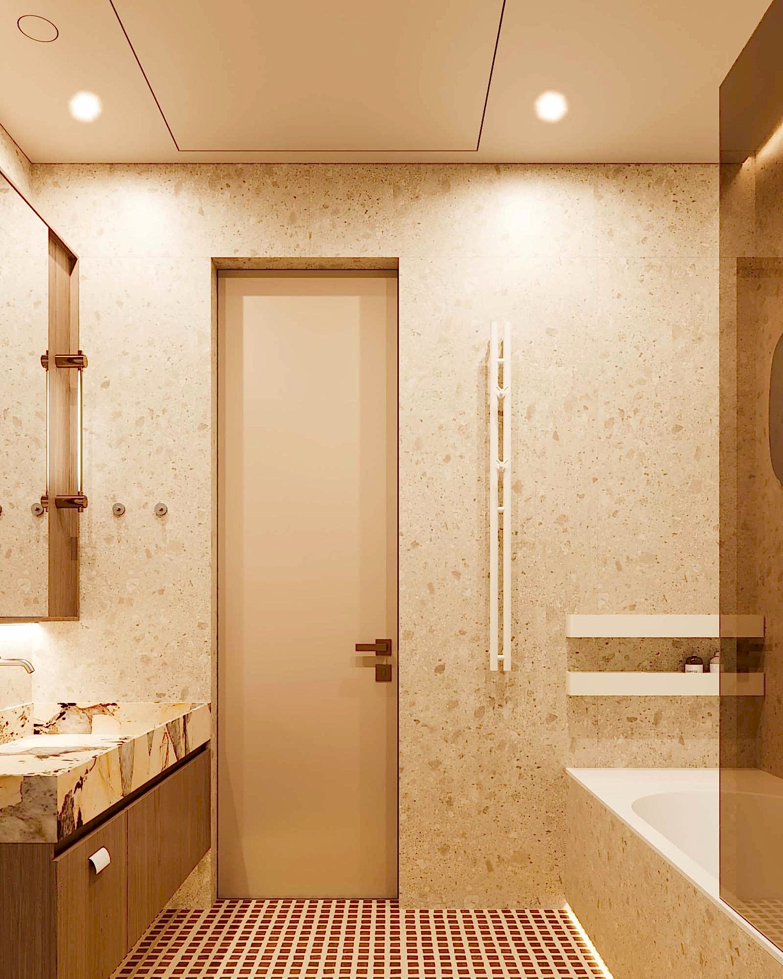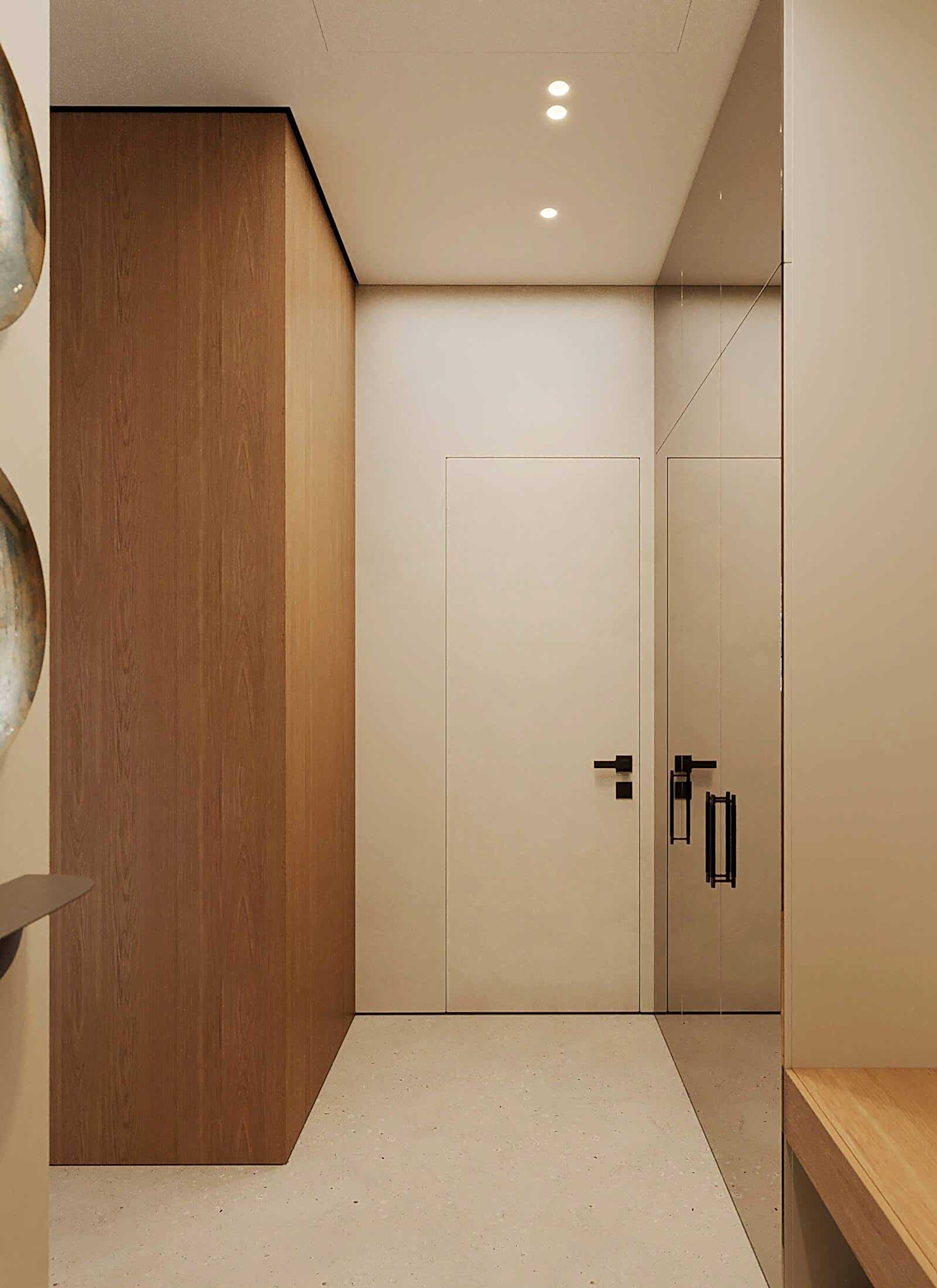 Гардероб и ванная находятся в одном-двух шагах за дверью.