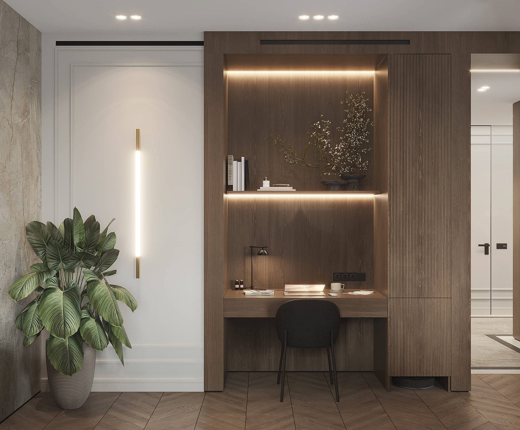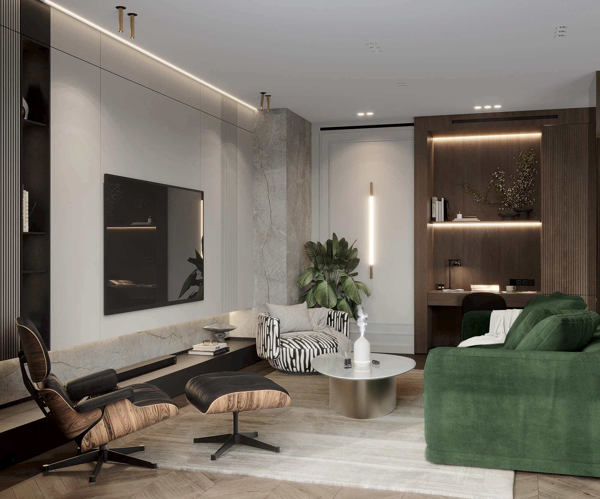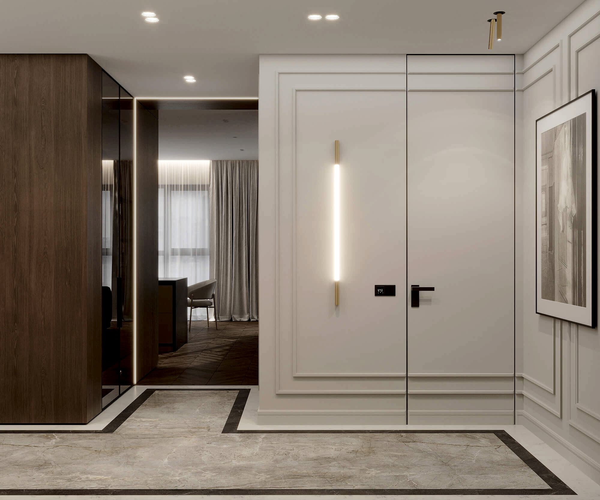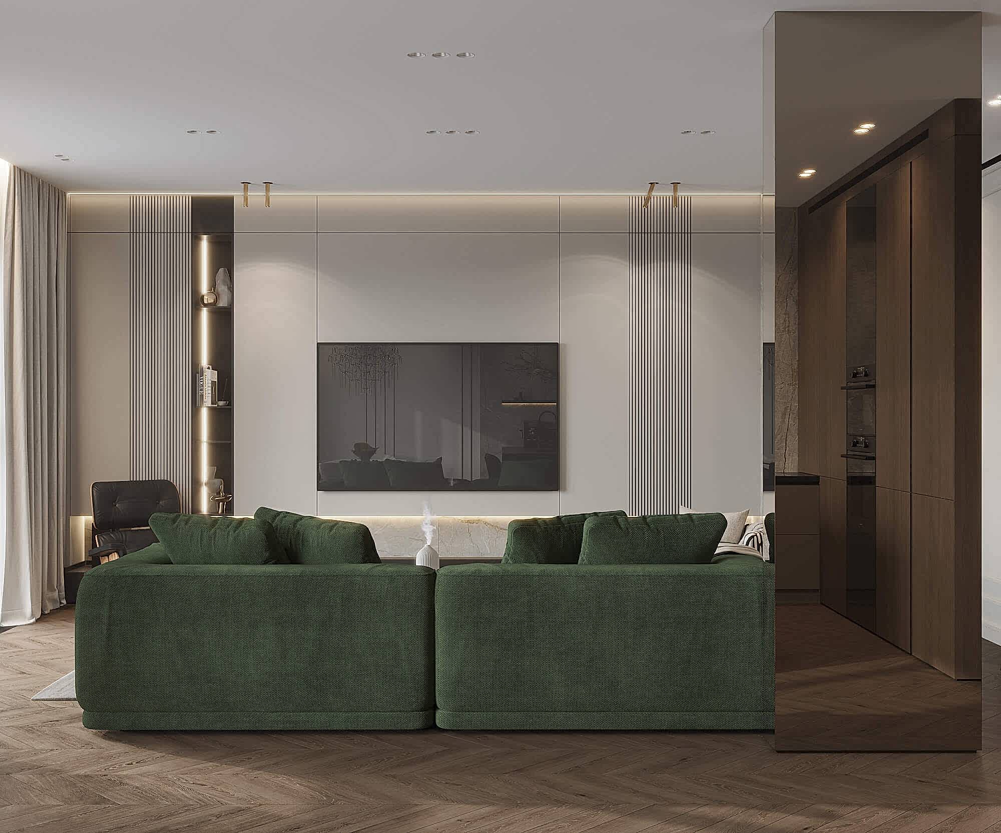 Мы остановились на стиле “современная классика”. Этот интерьер полностью отражает самих заказчиков - людей основательных, спокойных, утонченных, но с твердым Pin-Up