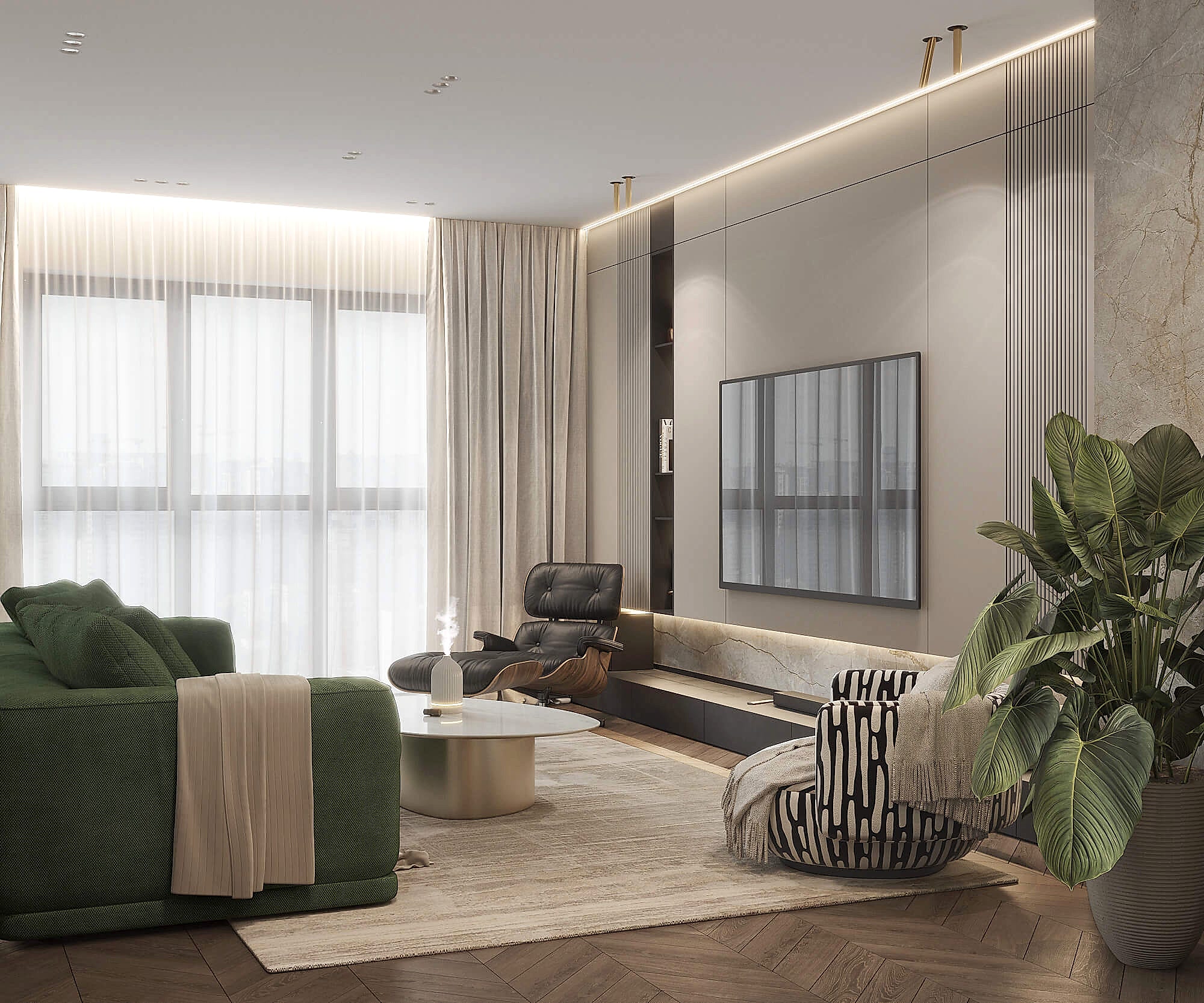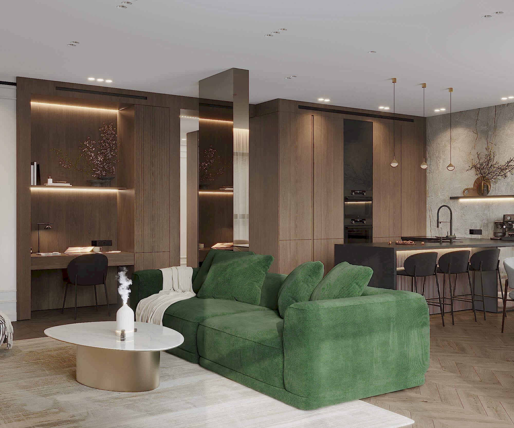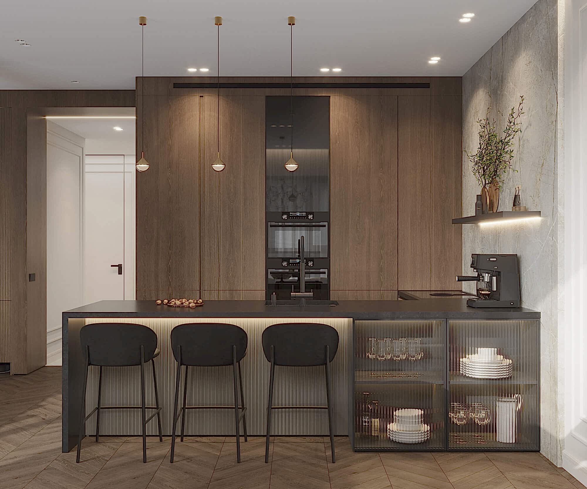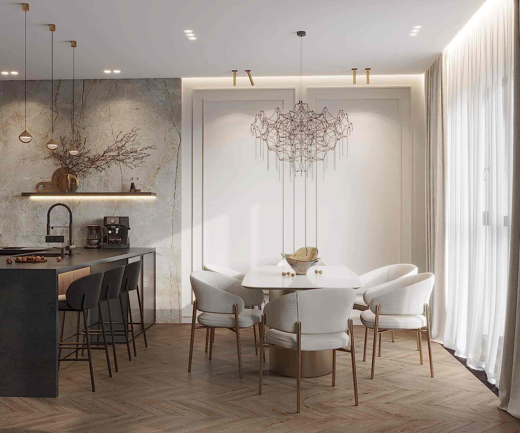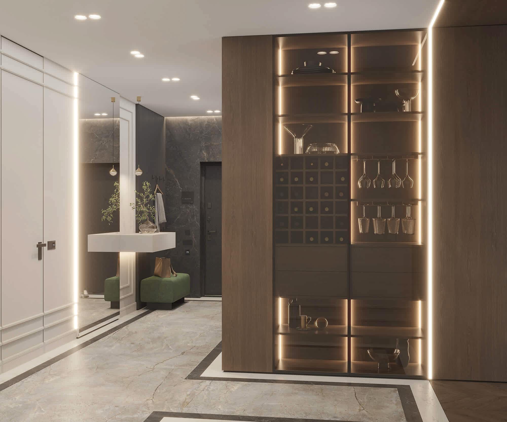 Мы остановились на стиле “современная классика”. Этот интерьер полностью отражает самих заказчиков - людей основательных, спокойных, утонченных, но с твердым Pin-Up