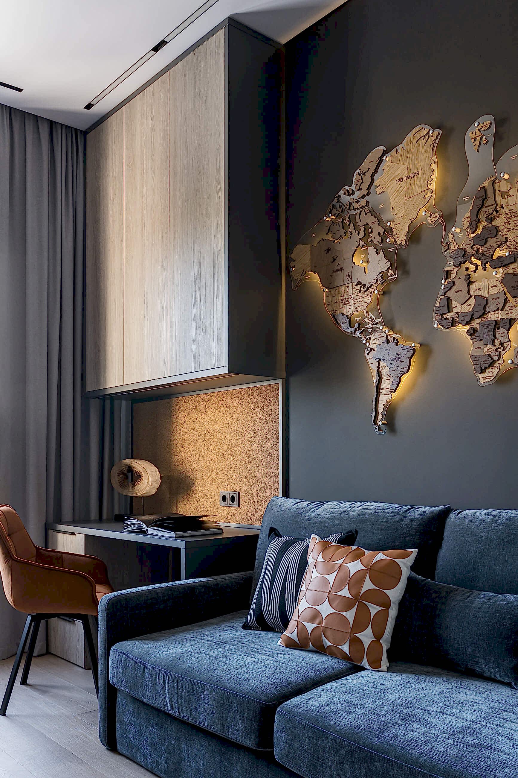 Квартира для молодой семьи с динамичным образом жизни. Pin-Up создан как «тихая гавань», где можно расслабиться, наполнится энергией и спокойно провести время всей семьей.